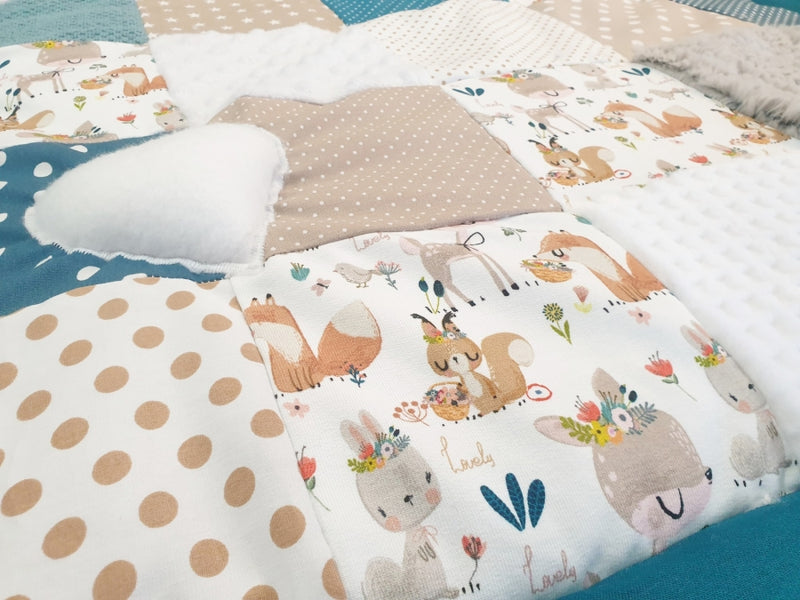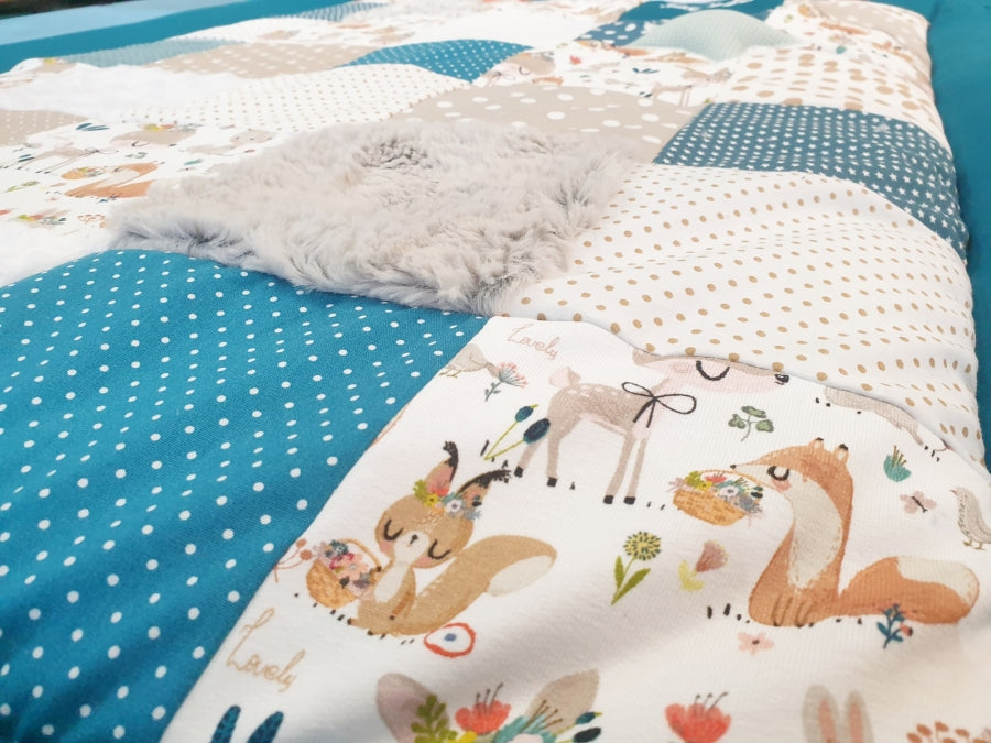 The normal adventure blanket comes with lots of bright colors, also with desired fabrics (www.schwanger.name), different sensory areas such as. Corduroy, plush, rope ect., crackling field, ribbon with teething ring can be removed and something else attached, rattle, squeaker, . It is ideal for the floor.