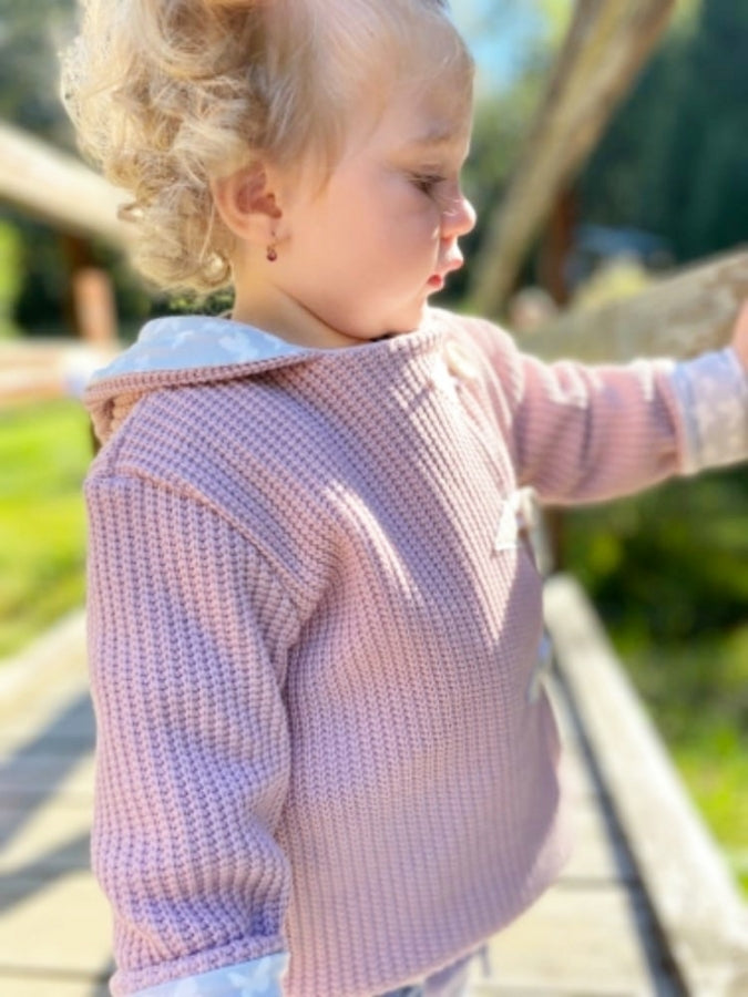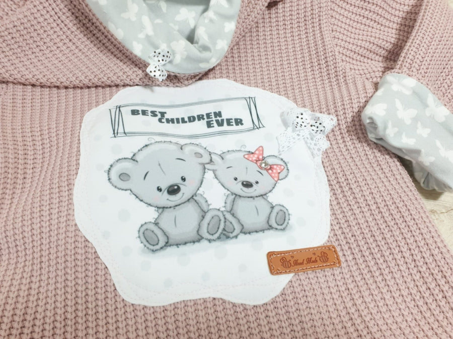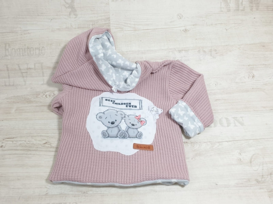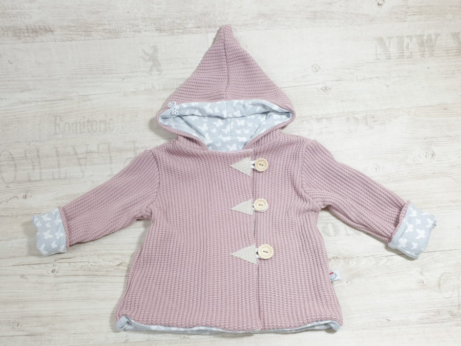 Atelier MiaMia - hooded jacket baby child size 50-140 coarse knit jacket limited !! Chunky knit dusky pink teddy J21