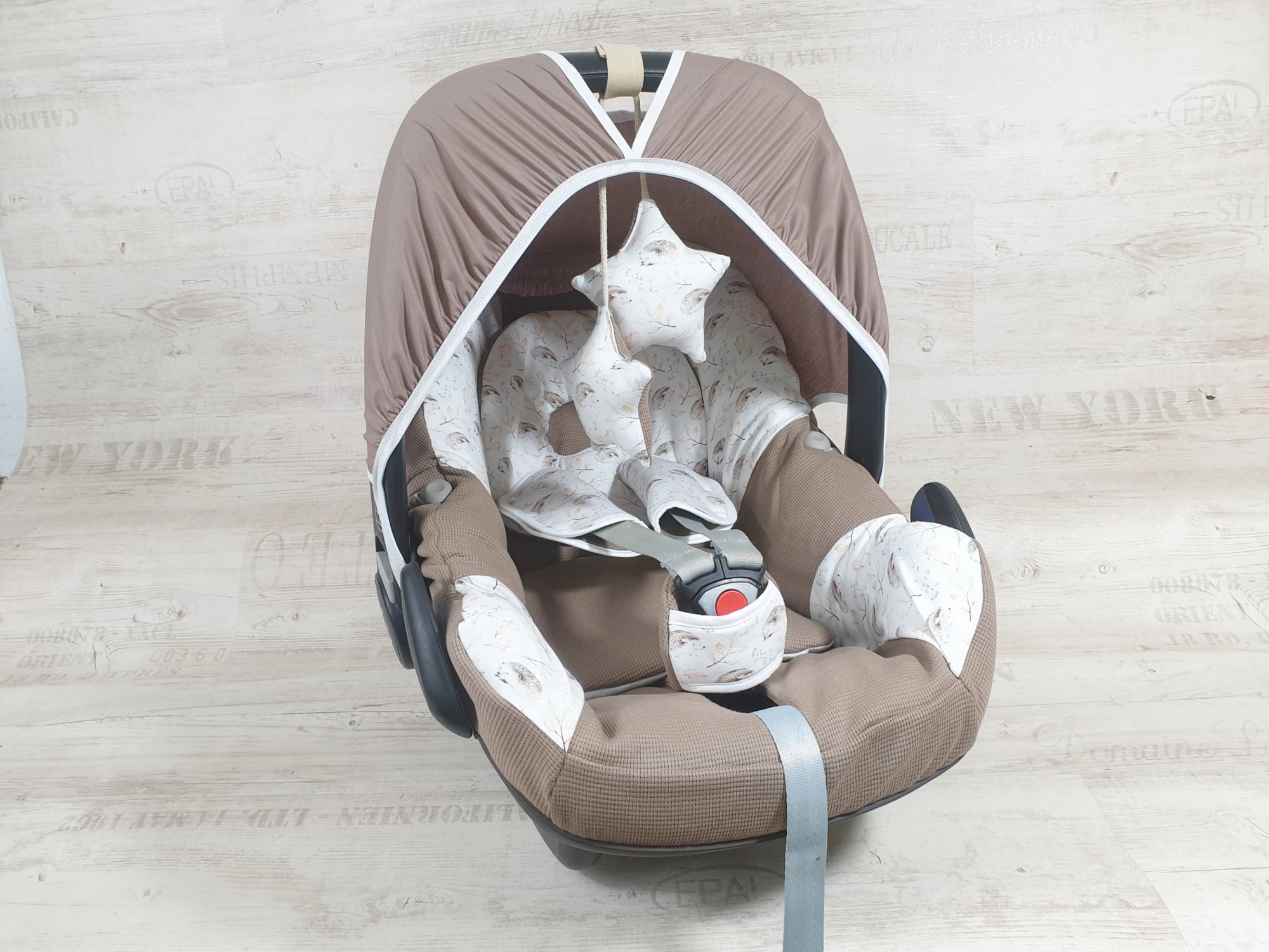 Wechselbezüge für den Kindersitz dazu zählen folgende Modelle: Maxi Cosi Cabriofix - Citi - Pebble, Kindersitz Maxi Cosi Pearl - Priori, Römer Babyschale HSRII und Kindersitz Römer Britax, Recaro Privia, Safety1, Cybex Q, Hauck Zero. Zubehör für die Babyschale dazu gehören das Sonnendach, Gurtschoner, Sitzauflage, Kopfstütze, Sitzverkleinerer, Griffpolster. Die Bezüge lassen dein Baby angenehm weich und kuschelig liegen. Ein Baumwollbezug ist im Sommer deutlich angenehmer und das Baby schwitzt weniger. Außerdem schützt der Bezug deinen Autositz vor Schmutz. Mit passenden Sonndächer schützt du dein Baby nicht nur im Sommer: Bei kaltem Wetter schützt das Dach vor Zugluft und generell vor neugierigen Blicken. Wähle dein Lieblingsoutfit für den Maxi-Cosi und verpasse ihm einen frischen Look! Für den Kinderwagen haben wir tolle Sonnensegel die es einzigartig nur bei uns gibt, das Doppelflügel Sonnensegel haben wir selbst designt es schützt von jeder Seite und kann individuell am Kinderwagen eingestellt werden ohne das ständig das Segel umgehängt werden muss. Kinderwagenfusssäcke für den Kinderwagen in kombi Ausführung für jede Jahreszeit richtig ausgestattet egal ob im Winter mit dicker Kuscheleinlage oder dünn für den Sommer die Hauben können je nach Jahreszeit ausgetauscht werden.
