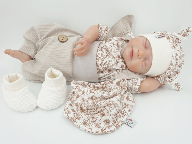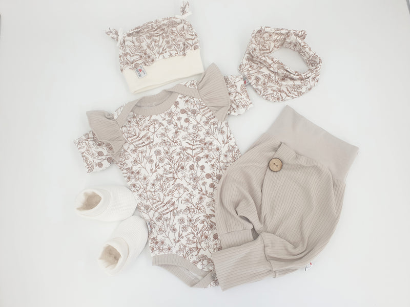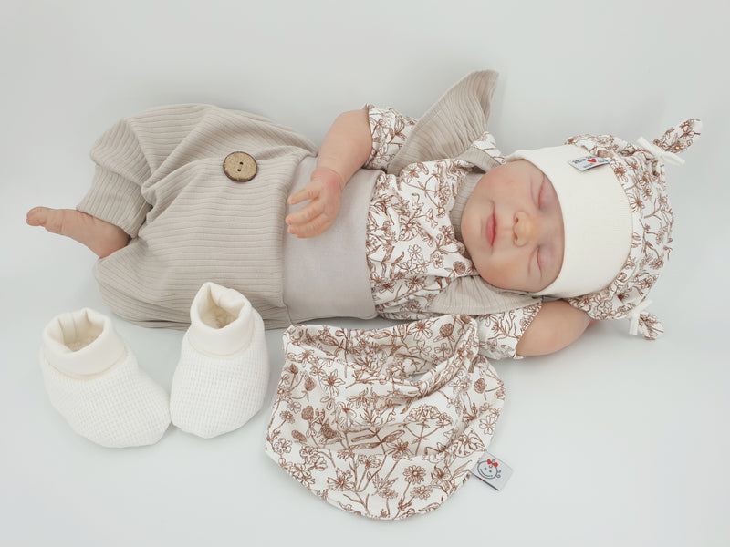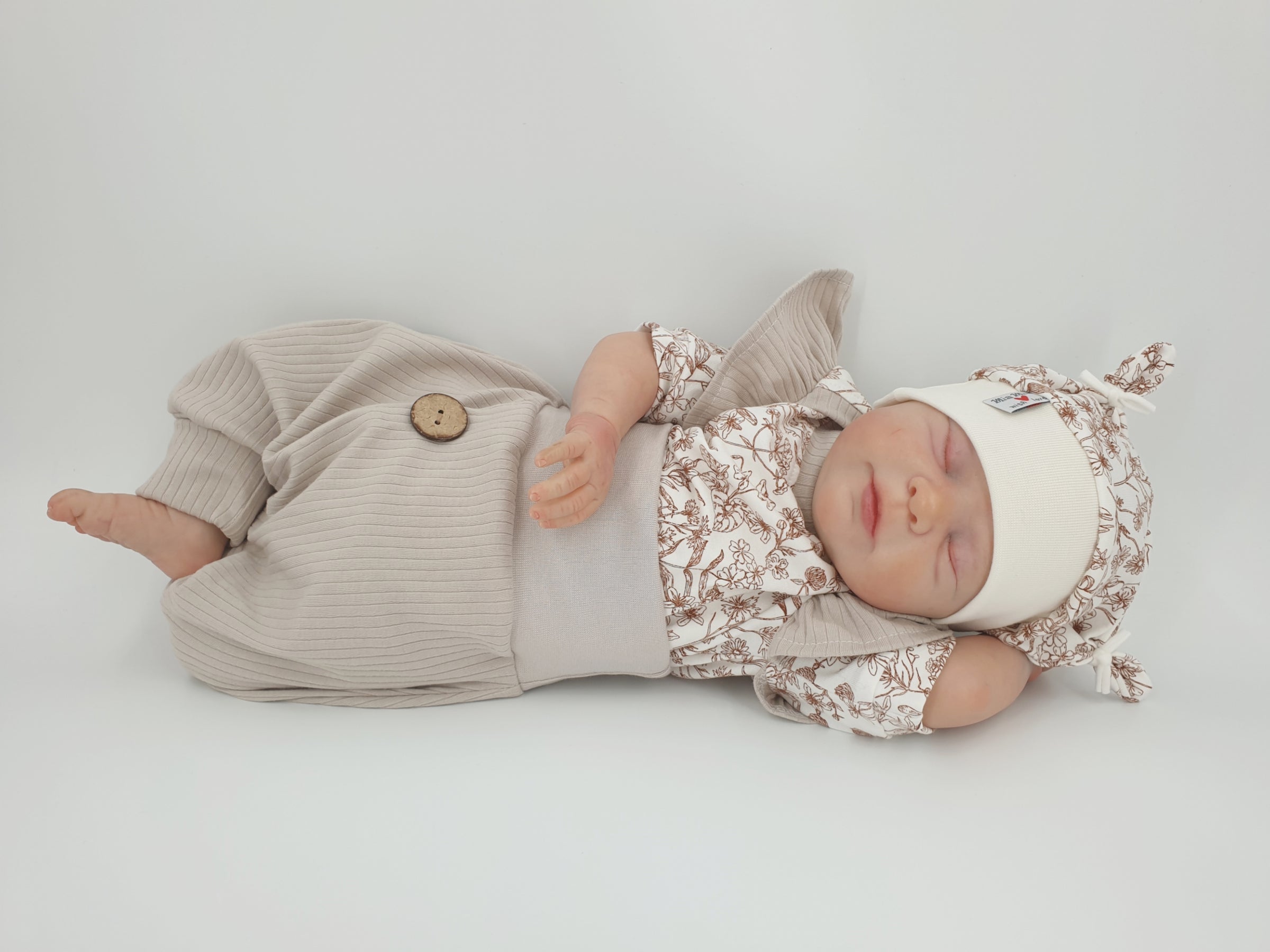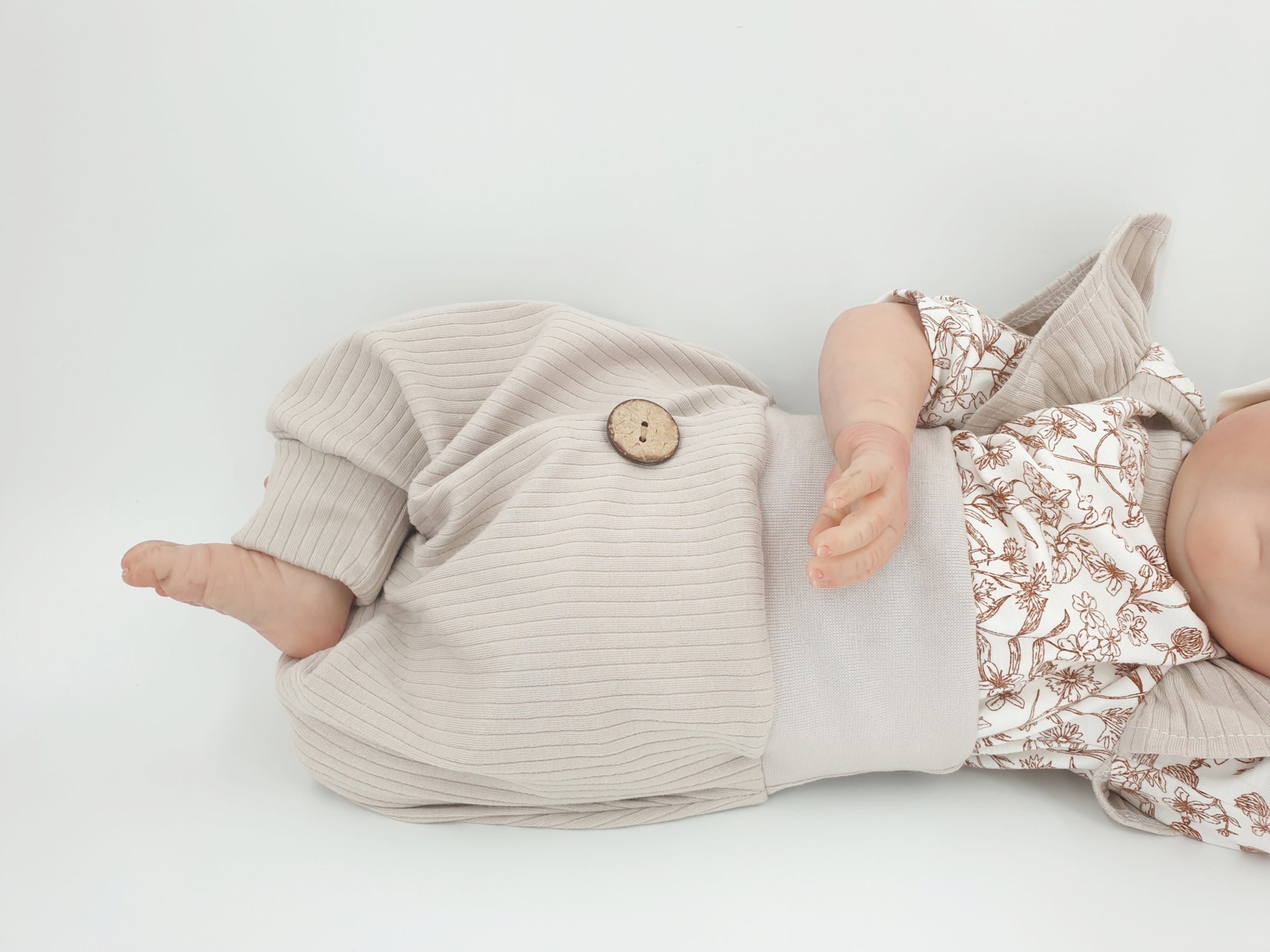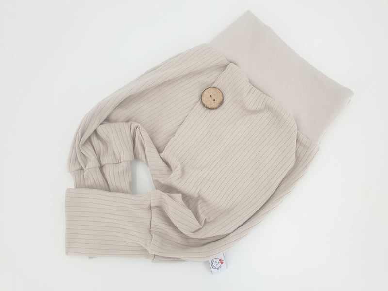 Coole Pumphose oder Babyset mit Knopf Rippe beige von Atelier MiaMia