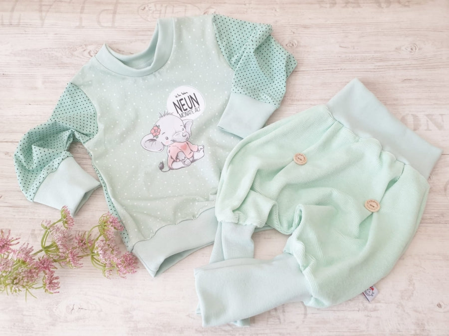 Coole Pumphose oder Babyset Fein Cord Jersey Mint 87 von Atelier MiaMia
