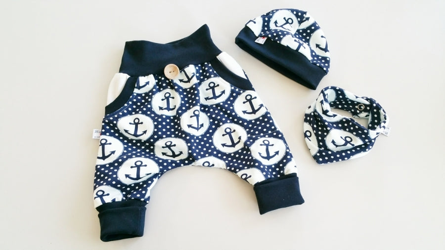 Coole Pumphose oder Babyset kurz und lang Anker Blau Punkte 71 von Atelier MiaMia