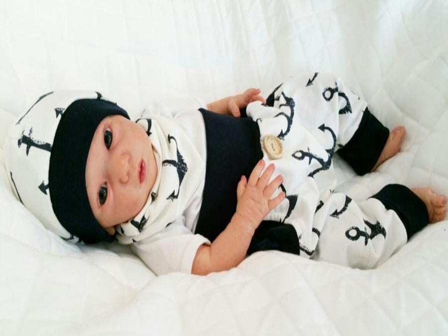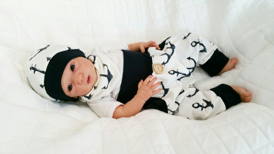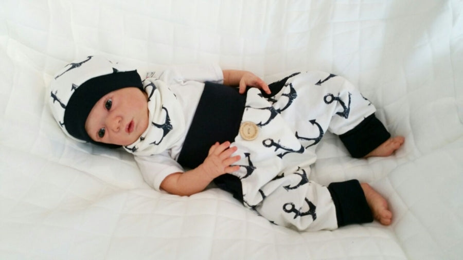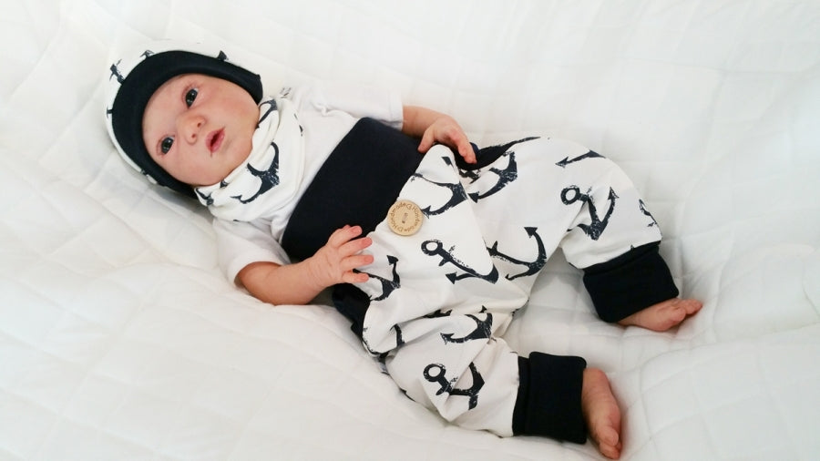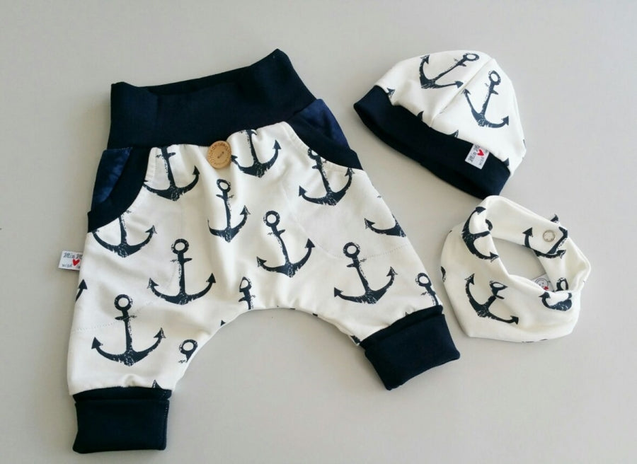 Coole Pumphose oder Babyset kurz und lang großer Anker weiß blau 77 von Atelier MiaMia