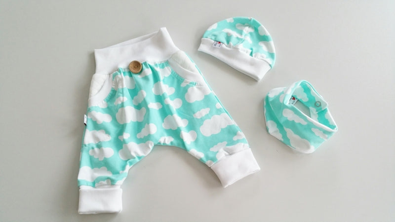 Coole Pumphose oder Babyset kurz und lang Mint Wolken 53 von Atelier MiaMia