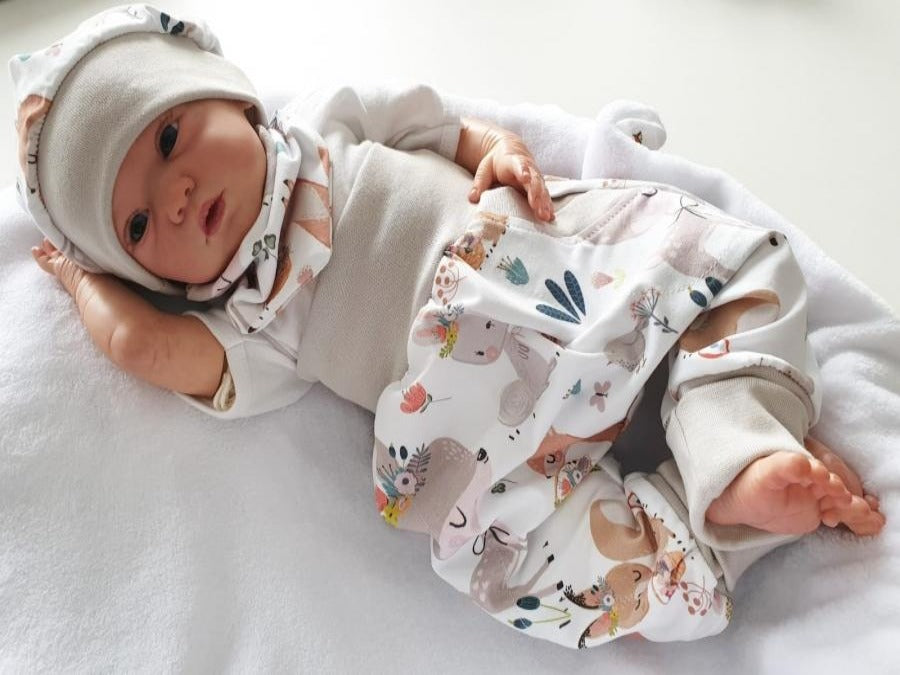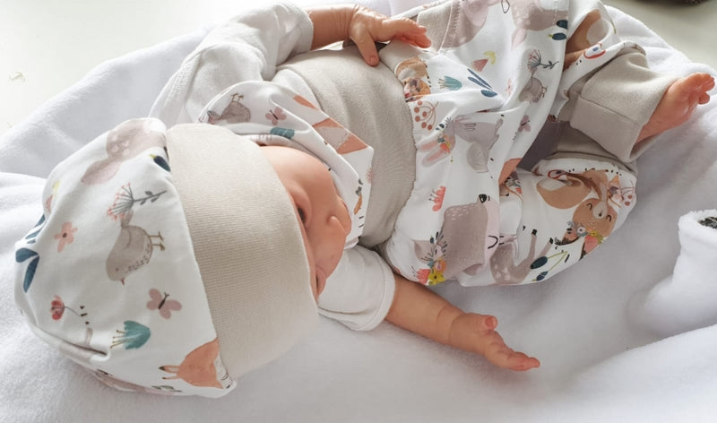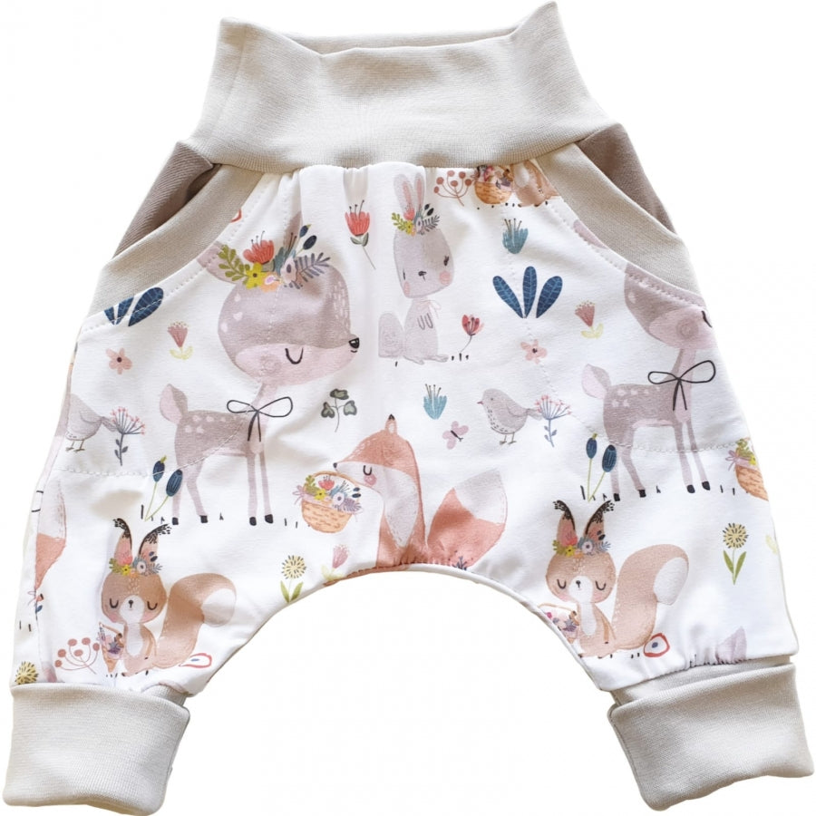 Coole Pumphose oder Babyset kurz und lang Rehe -Waldtiere Sand 62 von Atelier MiaMia