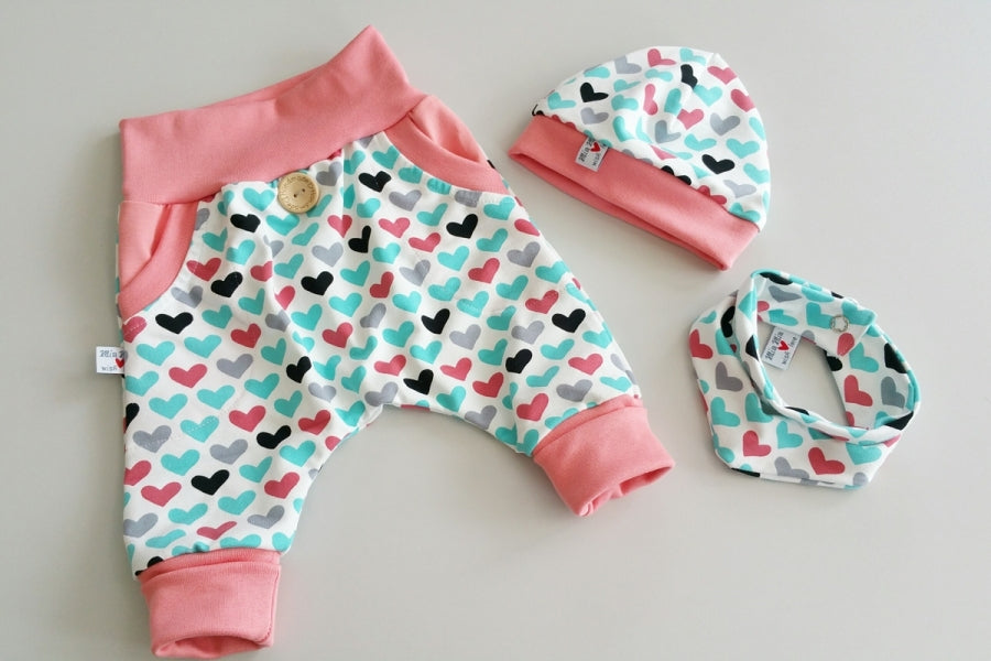 Coole Pumphose oder Babyset kurz und lang Türkis Apricot Herzen 16 von Atelier MiaMia