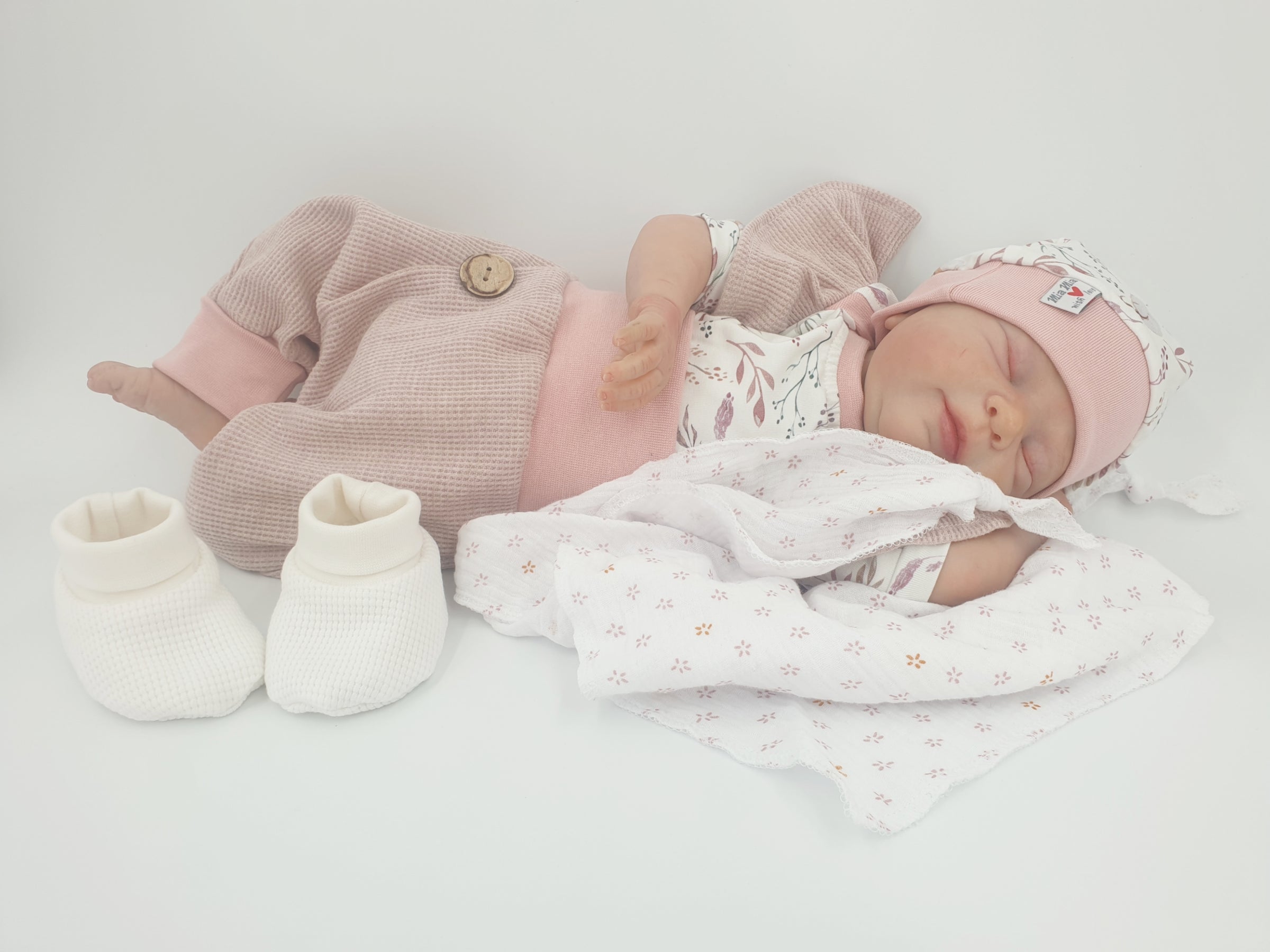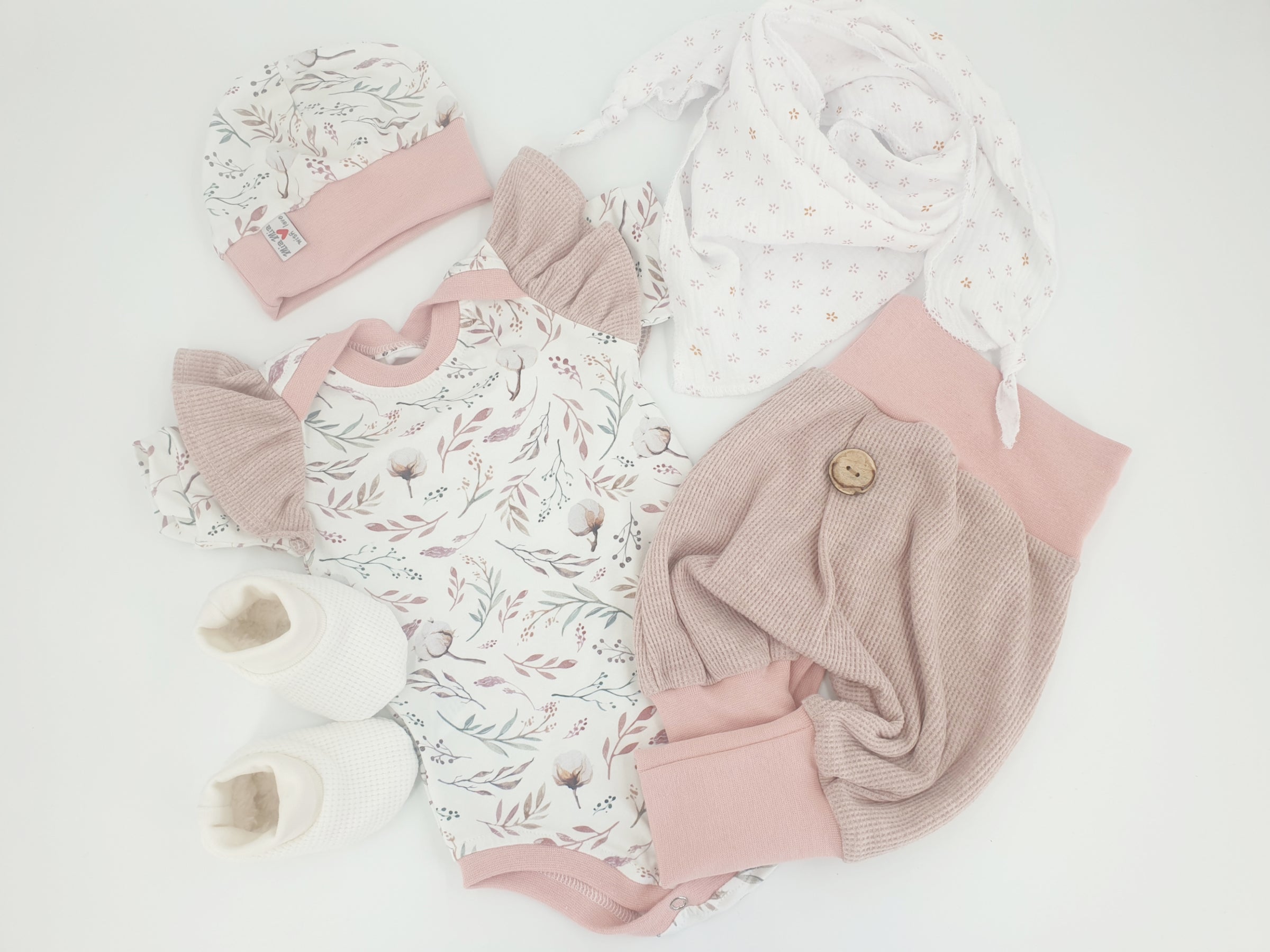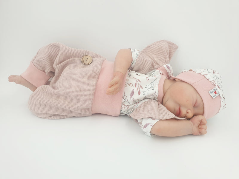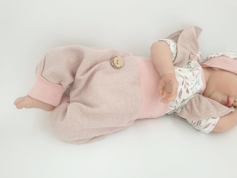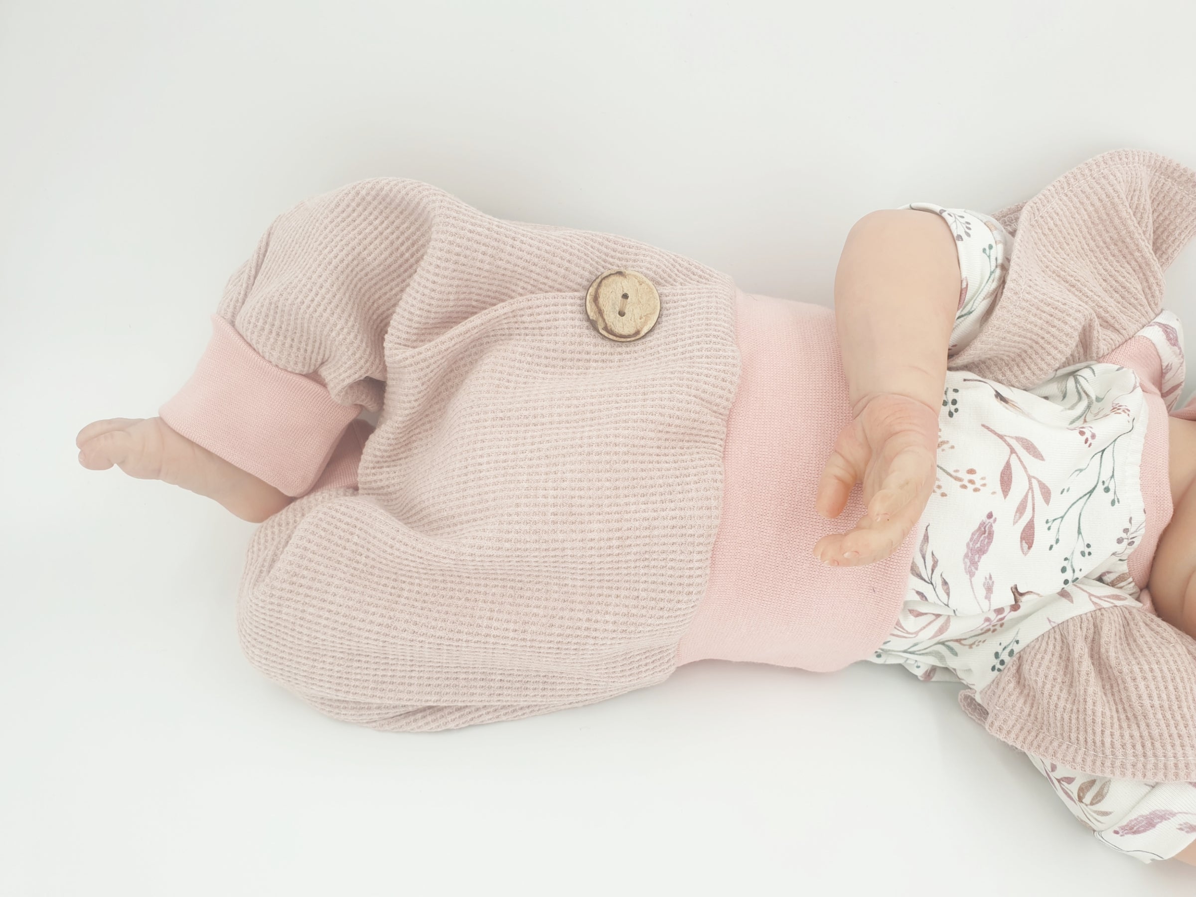 Coole Pumphose oder Babyset mit Knopf altrosa meliert von Atelier MiaMia