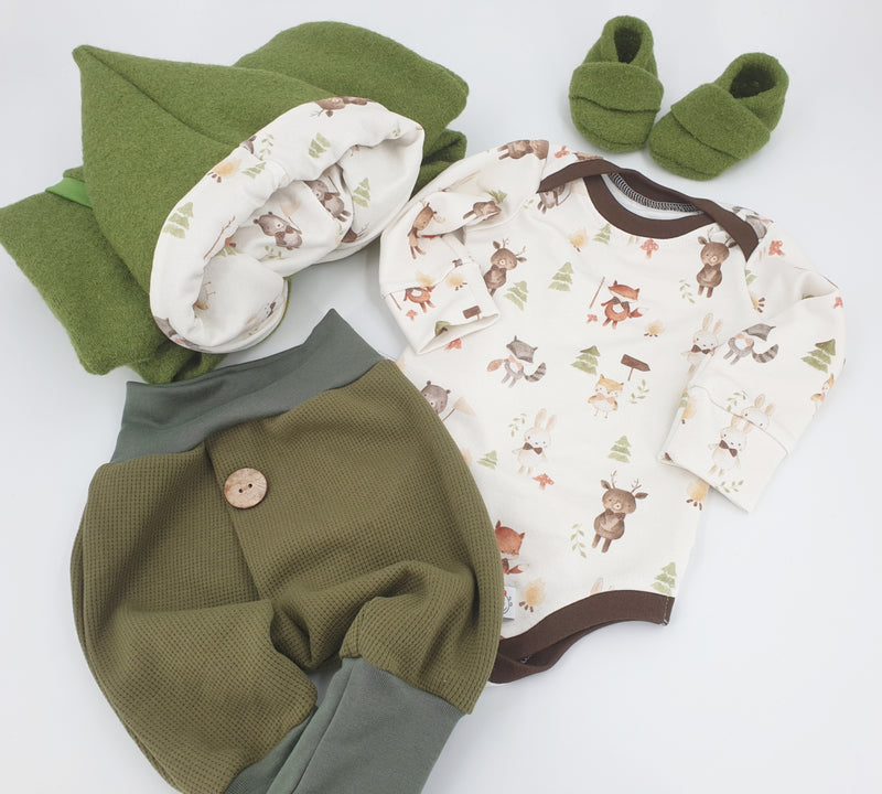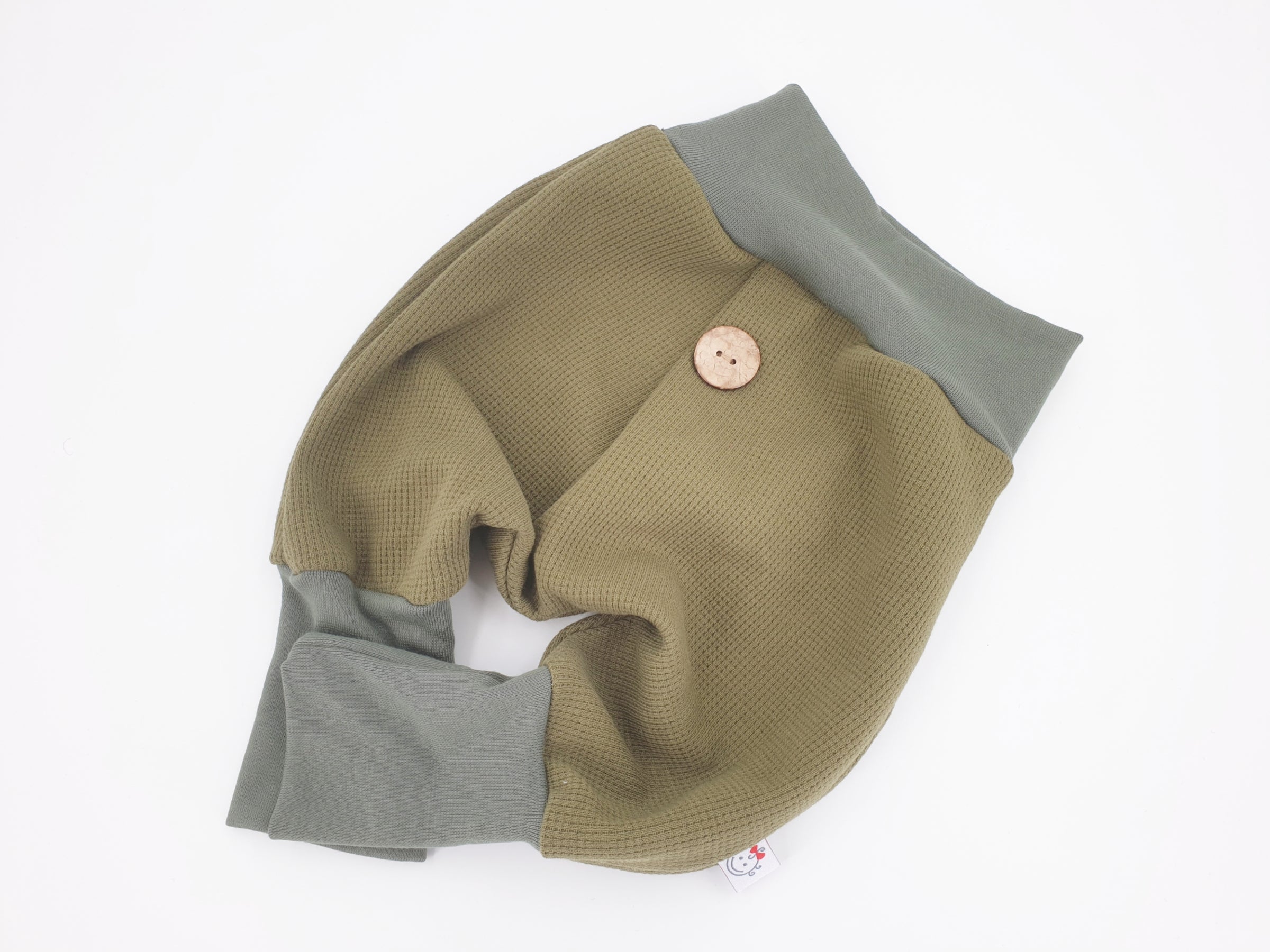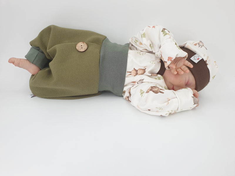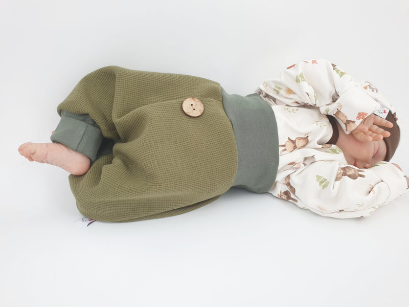 Coole Pumphose oder Babyset mit Knopf bis Gr. 140 olive von Atelier MiaMia