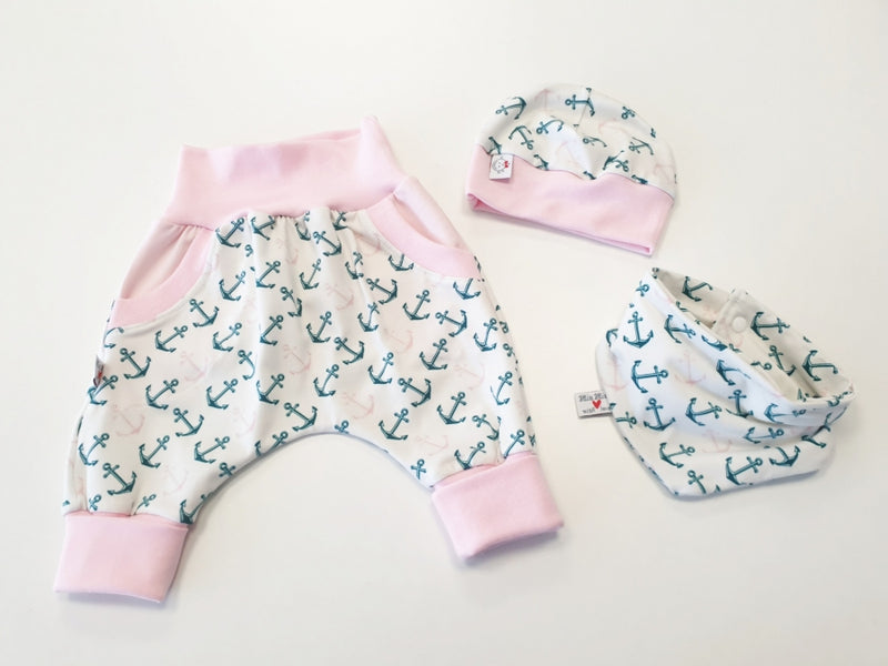 Coole Pumphose oder Babyset kurz und lang Anker Blau Rosa 10 von Atelier MiaMia