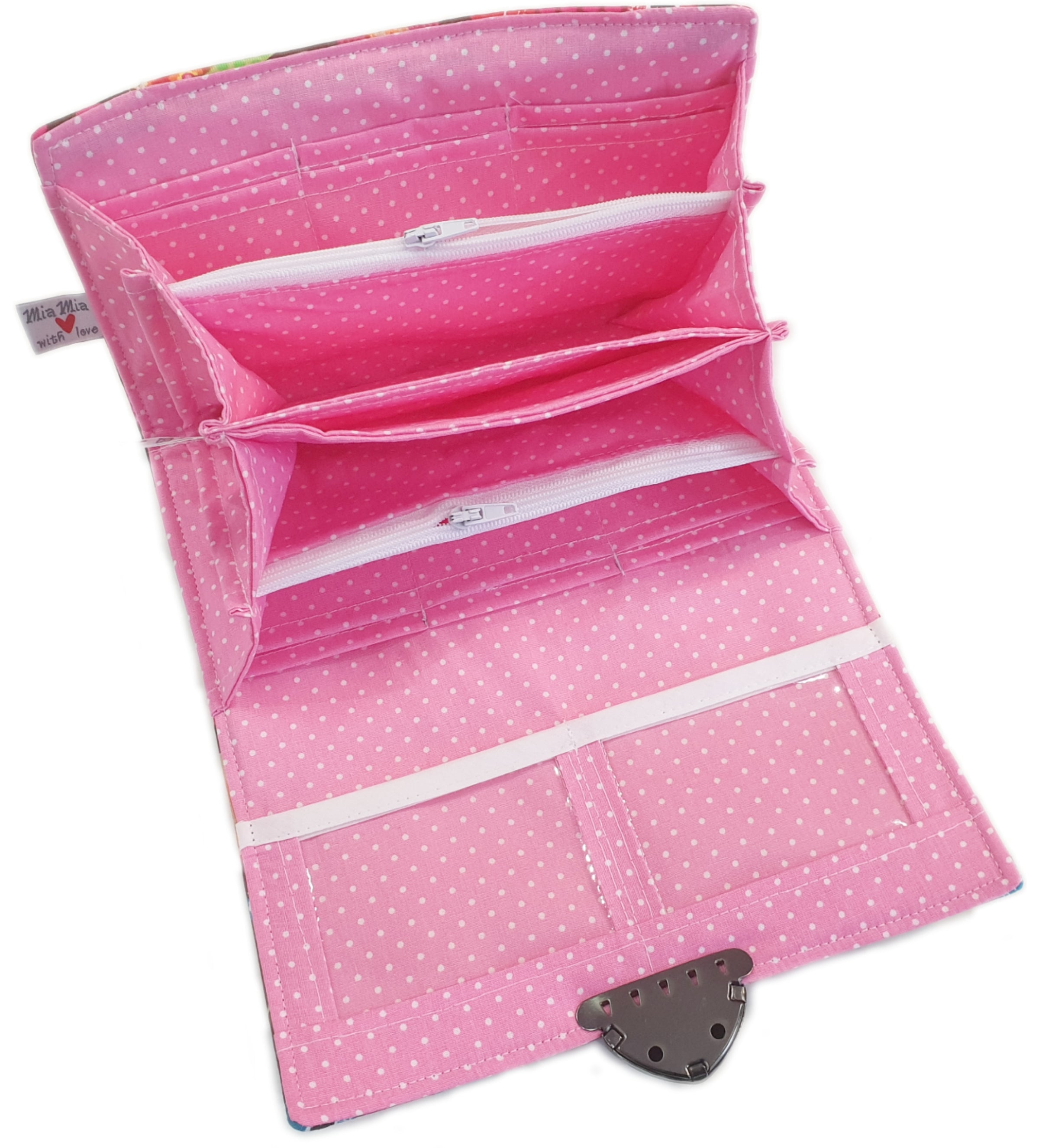 Prachtstück passt Perfekt zu Frauen die wie ich viel Kram in der Geldbörse haben in der XL Gesldbörse ist viel Platz für alles klein kann jeder aber diese hat nicht jeder :o) es passen 12 Karten rein 2 Fächer mit Reißverschluss 5 Fächer für Geldscheine, Rabattkarten ect. und natürlich ganz wichtig 2 Fächer für Bilder damit die Liebsten immer mit dabei sind. Bei der MIDI und der MINI ist es fast genauso ein kleiner Unterschied ist hier das es nur 8 Kartenfächer gibt und die Größe natürlich. Es ist alles gut verstärkt und doppelt Stoff gelegt und genäht damit hast du auch ausreichend Stabiität.