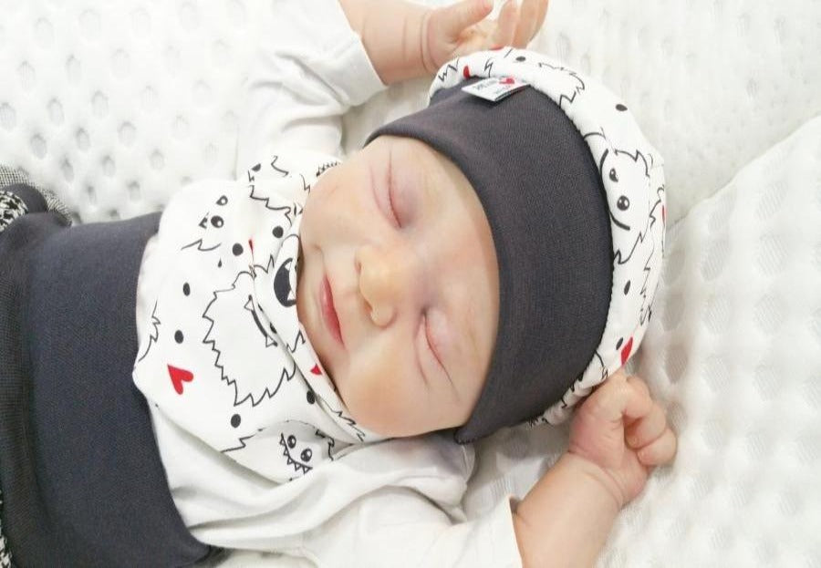 Die Baby Mützen werden von uns aus hochwertigem Baumwolljersey gefertigt. Dieser Stoff besteht zu 95% aus Baumwolle und zu 5% aus Elasthan. Dadurch is die Mütze leicht, kuschelig weich und sehr angenehm auf der Haut zu tragen. Zudem schmiegt sich die Mütze perfekt dem Köpfchen Ihres kleinen Lieblings an und hält dieses immer warm.