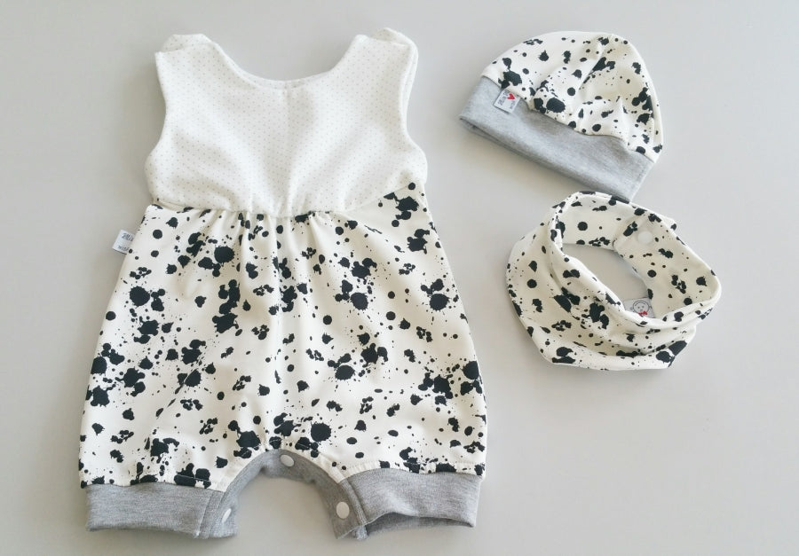 Super schöner Baby - Strampler kurzen Beinen für den Sommer mit oder ohne Knopfleiste einzeln oder im Set mit einer Beanie und einem Dreieckstuch bequem, gemütlich und fluffig kein kneifen, kein ziepen, besonders praktisch die Druckknöpfe zwischen den Beinen für ein einfaches wickeln. Das Set ist super cool und trendig mit vielen kleinen Details. Die Kombination aus ausgesuchten Stoffen ist Perfekt es gibt nichts bequemeres und weicheres. Bei der Auswahl sollten sie die Tatsächliche Größe Ihres Kindes wählen. Der Strampler sind reichlich geschnitten ! Beachten Sie bitte das unsere Produkte Hand Made Anfertigungen sind und jeweils auf Kundenwunsch angefertigt werden, es stellt Ihnen Sicher das jedes Produkt ein einzigartiges ist. Des Weiteren sind die Auflagen STRENGSTENS LIMITIERT um sicherzustellen dass Sie ein einzigartiges Produkt erhalten welches nicht jeder hat. Sie erwerben ein Produkt welches in Deutschland gefertigt wird und keine Massenware ist. Sie erhalten Das Produkt nur von uns auf Messen wie der Baby Welt, auf Etsy Kreativmärkten und exklusiv bei Amazon in Limitierter Auflage !