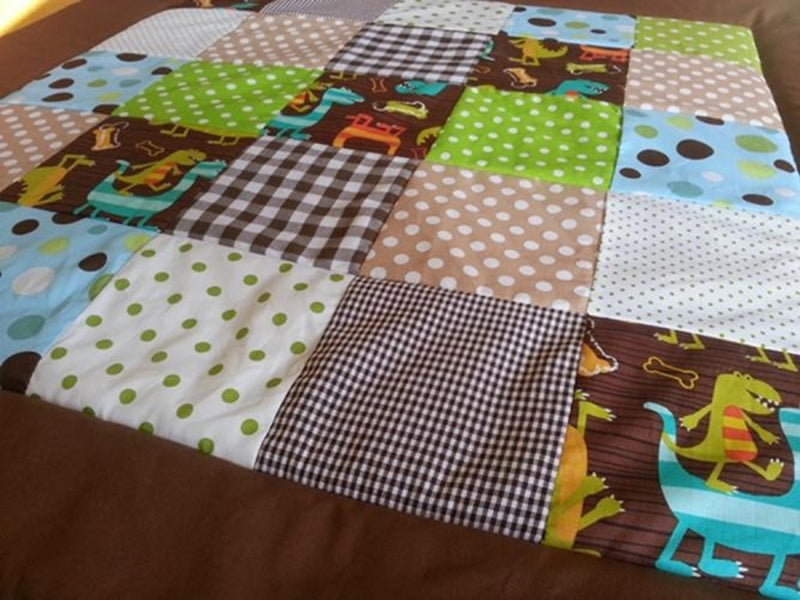 Kuscheldecke Patchwork Punkte Dinos braun mit Stickerei 36 von Atelier MiaMia