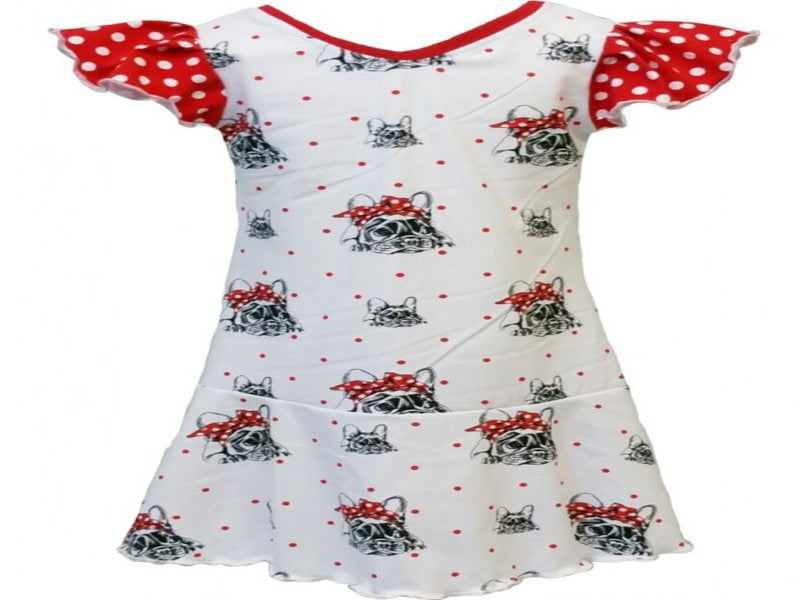 Hoodie Kleid Kurzärmlig auch im Set mit Leggins Größe 50-140 Bulldogge Rot Rüschen Sommer 100 von Atelier MiaMia