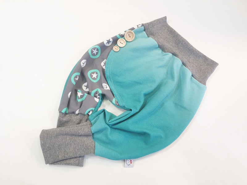 Rocky Pumphose Gr. 46-110 auch als Set mit Mütze und Tuch Sterne Blau Hellgrau Mint 27 von Atelier MiaMia