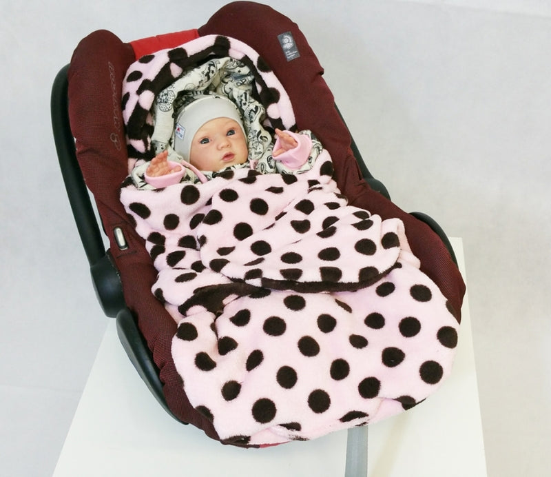 Einschlagdecke Babyschale rosa mit braunen Punkten von Atelier MiaMia