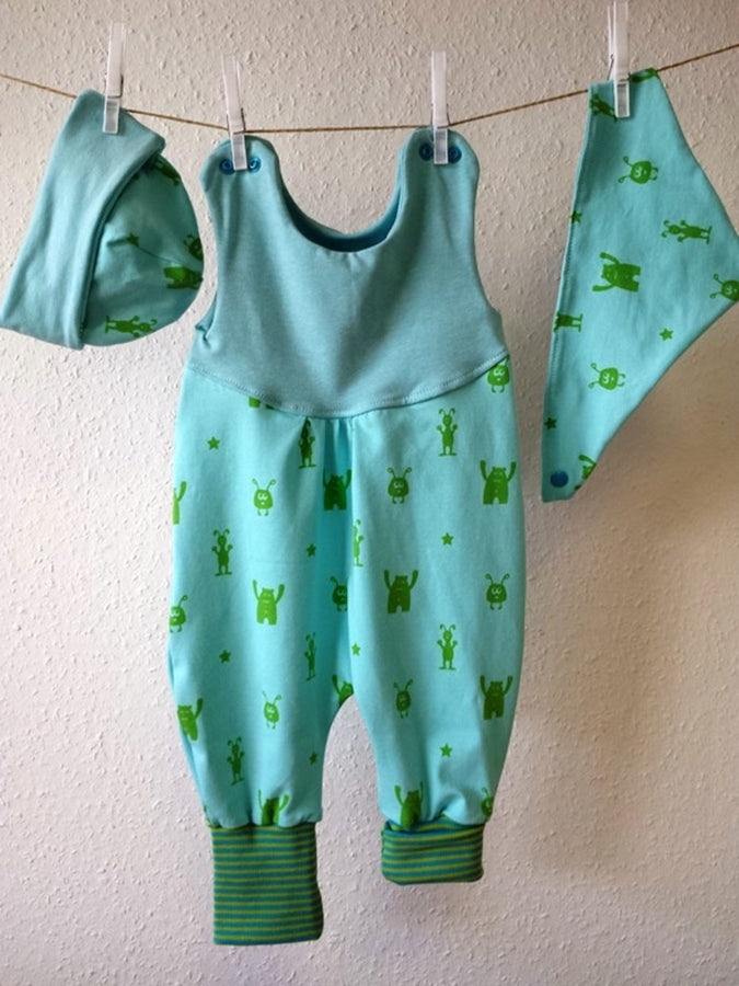 Strampler kurz und lang auch als Baby Set blau, grüne Monster 7 von Atelier MiaMia