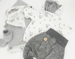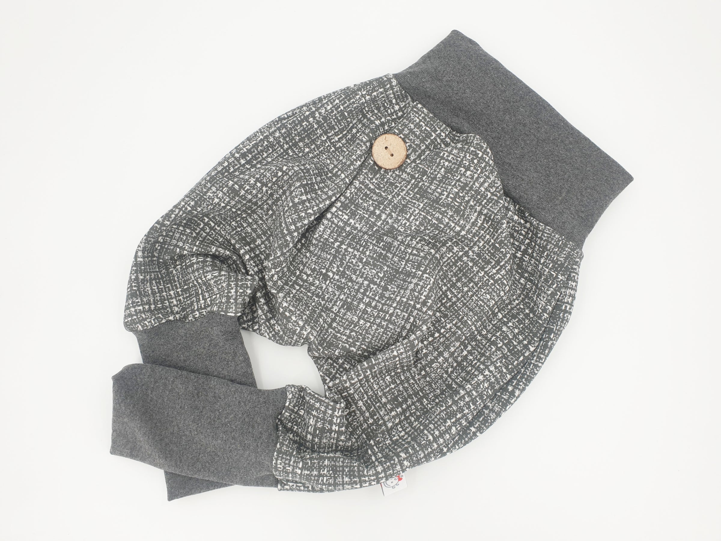 Coole Pumphose oder Babyset mit Knopf grau Karo von Atelier MiaMia
