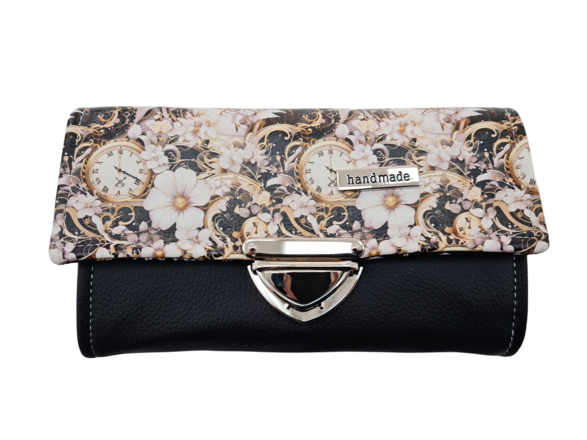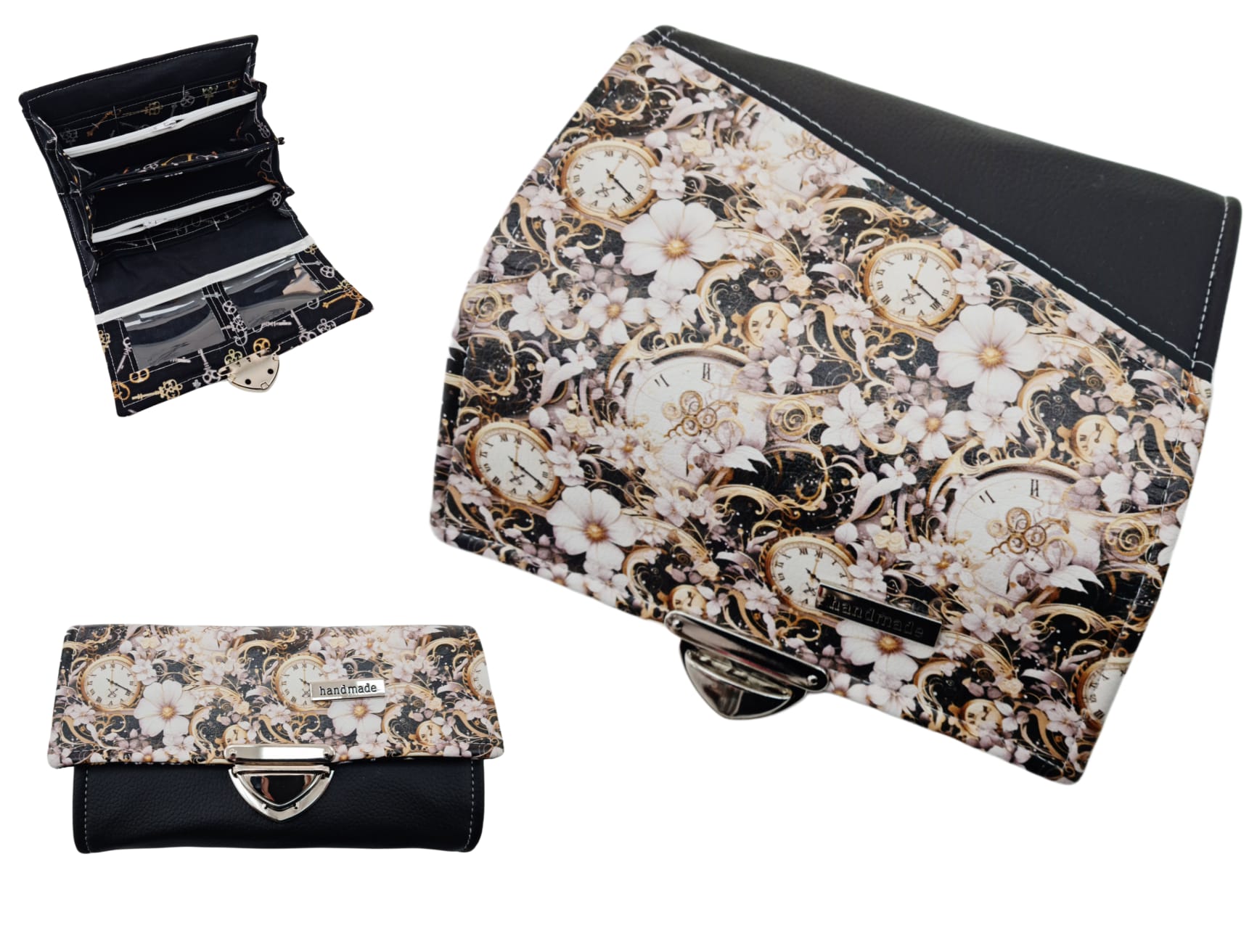 Geldbörse Uhren Blumen schwarz von Atelier MiaMia