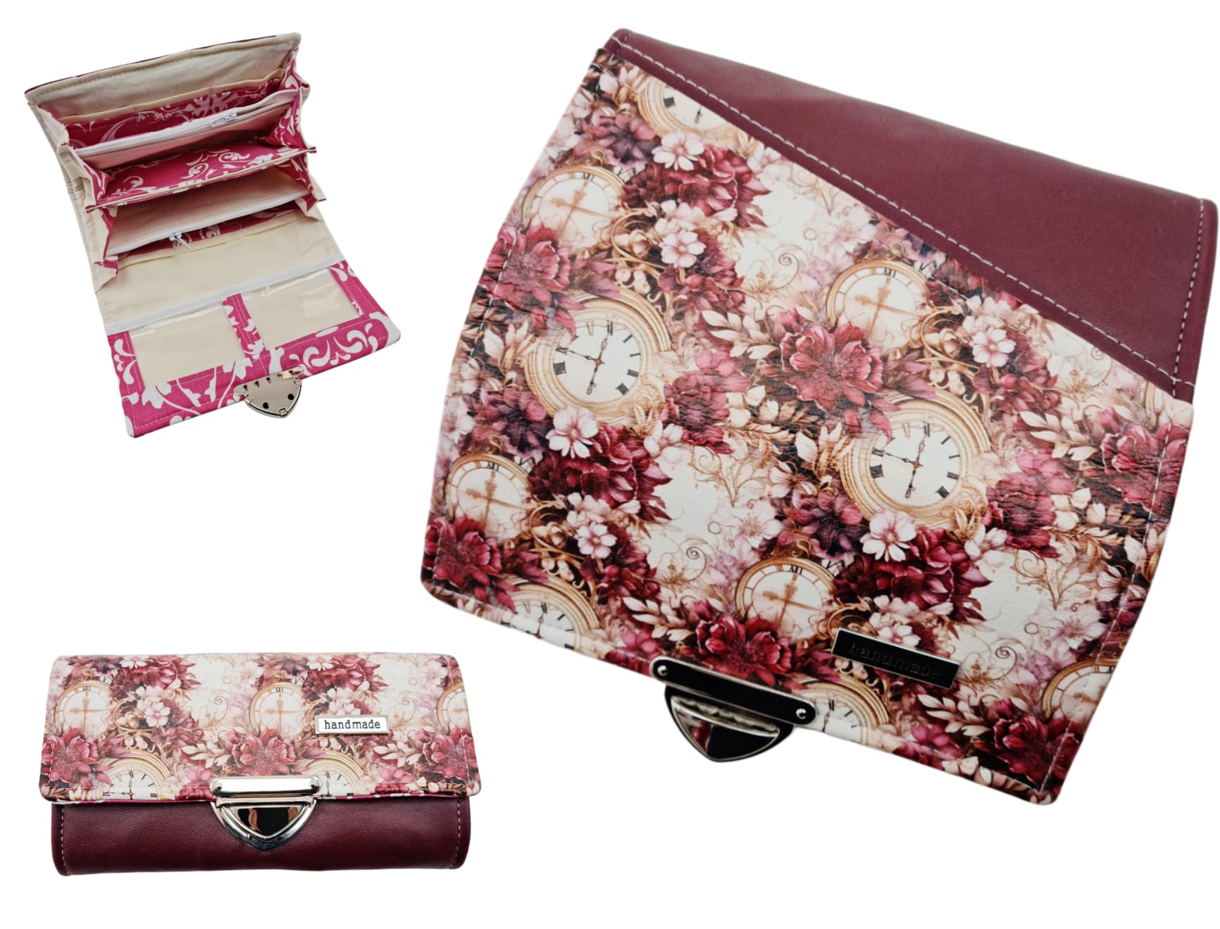 Geldbörse Uhren Blumen burgund von Atelier MiaMia