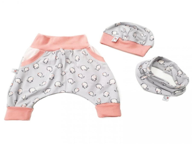 Beanie Set Mütze und Tuch Baby Vögel Rosa Grau Nr. 226 von Atelier MiaMia