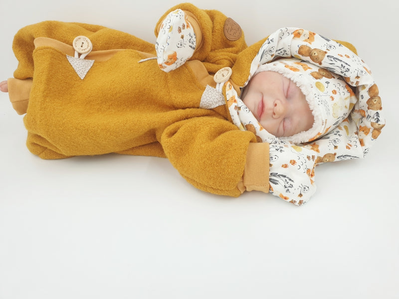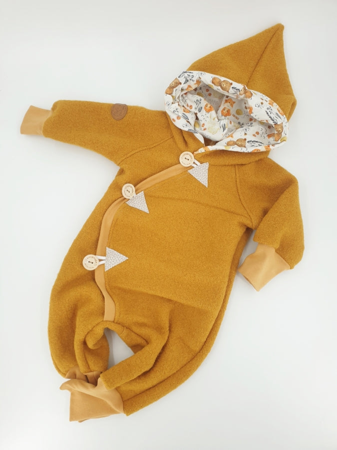 Descrizione: Morbida tuta in ottima lana cotta Salopette trendy in lana cotta con cappuccio a punta. Idrorepellente, termoregolatore e caldo, perfetto per la stagione fredda. Una maglia viene lavorata nel cappuccio in modo che sia un po' più morbida sulla testa. La tuta non ha tessuto extra all'interno, in modo da mantenere l'effetto termoregolatore della lana cotta! Ancora una volta, polsini extra lunghi da indossare più a lungo. Grazie alla generosa patta sul petto, NESSUNA aria fredda arriva al bambino. Facile da indossare e da togliere. Si prega di notare che i nostri prodotti sono realizzati a mano e sono realizzati su ordinazione, questo garantisce che ogni prodotto sia unico. Inoltre le edizioni sono STRETTAMENTE LIMITATE per assicurarti di ricevere un prodotto unico che non tutti hanno. Stai acquistando un prodotto fabbricato in Germania e non è un articolo prodotto in serie. Riceverai il prodotto da noi solo in occasione di fiere come Baby World, nel nostro negozio ed esclusivamente su Amazon in edizione limitata! Istruzioni per il lavaggio della lana: lavare a mano in acqua tiepida Una tuta per neonati offre una protezione completa Una tuta per neonati è un capo di abbigliamento ideale per neonati e bambini. Realizzato in un unico pezzo, può essere indossato rapidamente e facilmente e avvolge il tuo bambino tutt'intorno. Niente può scivolare, una tuta si adatta perfettamente a qualsiasi condizione atmosferica. Tute per neonati: diversi colori e modelli Che si tratti di un bambino o di una ragazza, puoi trovare rapidamente una tuta per bambini adatta perché sono disponibili in molti modelli diversi. Anche i neonati possono indossare un bambino del genere in generale. Quando le giornate si fanno un po' più fresche, puoi afferrare con i piedi una tuta per bambini realizzata in morbido pile. Il materiale non è solo piacevolmente morbido, ma anche molto caldo. Non è più necessario vestirsi faticosamente e accuratamente con spesse giacche e pantaloni invernali, la tuta da neve monopezzo viene rapidamente tirata sopra il normale guardaroba. Il cappuccio, anch'esso cucito saldamente, mantiene la testa, il collo e le orecchie al caldo e il tuo bambino è protetto dal freddo tutt'intorno. Una salopette per bebè è un ottimo capo di abbigliamento che è totalmente funzionale, ha un bell'aspetto e avvolge il tuo bambino. Non perdi molto tempo a vestirti e puoi dedicarti a cose più belle più velocemente. Un bambino in generale è una buona scelta in qualsiasi momento dell'anno.