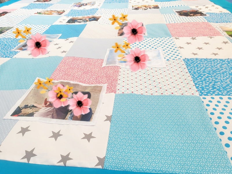 Atelier MiaMia coperta coccolosa come da foto coperta motivo floreale azzurro stelle con foto 12