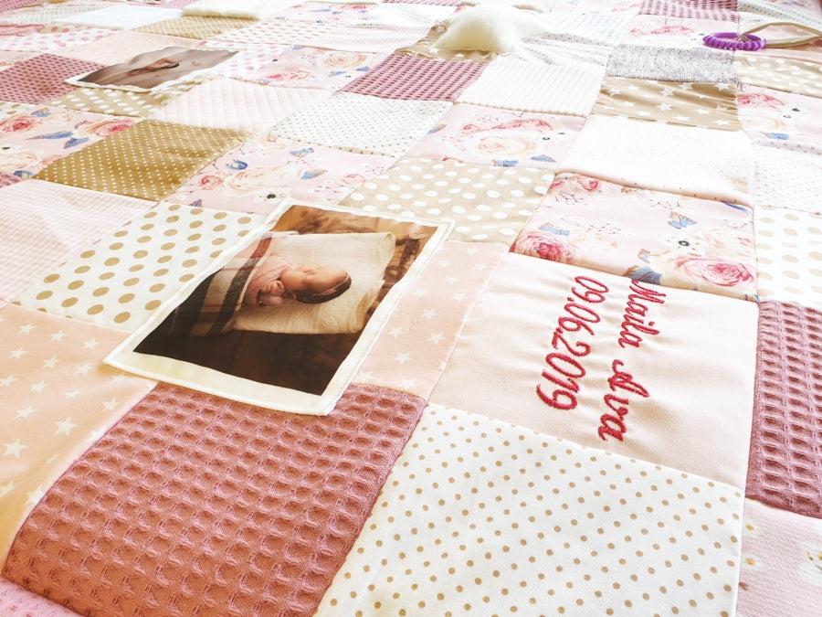 Atelier MiaMia coperta coccole come foto coperta rose maglia e waffle rosa antico con foto 17
