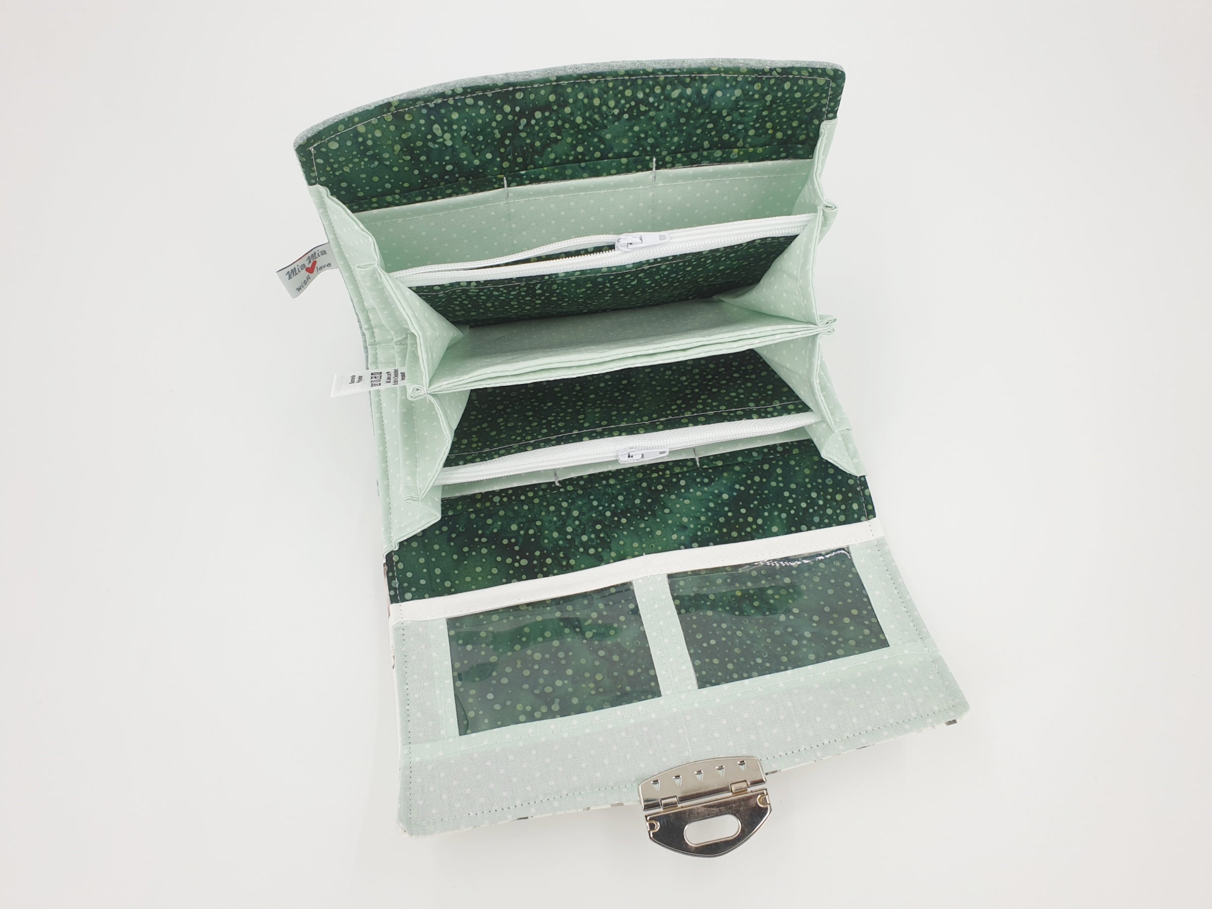 Splendido pezzo si adatta perfettamente alle donne che, come me, hanno un sacco di cose nella borsa nella borsa XL c'è molto spazio per tutto ciò che è piccolo tutti possono farlo ma non tutti ce l'hanno :o) 12 carte in 2 scomparti con cerniera 5 scomparti per banconote, tessere sconto ecc. e ovviamente 2 scomparti molto importanti per le foto in modo che i tuoi cari siano sempre con te. Con il MIDI e il MINI è quasi lo stesso, una piccola differenza qui è che ci sono solo 8 slot per schede e ovviamente le dimensioni. Tutto è ben rinforzato, raddoppiato e cucito in modo da avere una stabilità sufficiente.