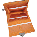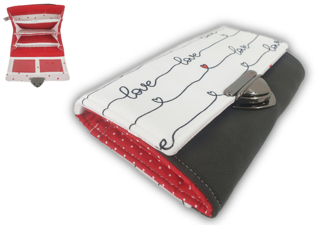 Splendido pezzo si adatta perfettamente alle donne che, come me, hanno un sacco di cose nella borsa nella borsa XL c'è molto spazio per tutto ciò che è piccolo tutti possono farlo ma non tutti ce l'hanno :o) 12 carte in 2 scomparti con cerniera 5 scomparti per banconote, tessere sconto ecc. e ovviamente 2 scomparti molto importanti per le foto in modo che i tuoi cari siano sempre con te. Con il MIDI e il MINI è quasi lo stesso, una piccola differenza qui è che ci sono solo 8 slot per schede e ovviamente le dimensioni. Tutto è ben rinforzato, raddoppiato e cucito in modo da avere abbastanza stabilità.