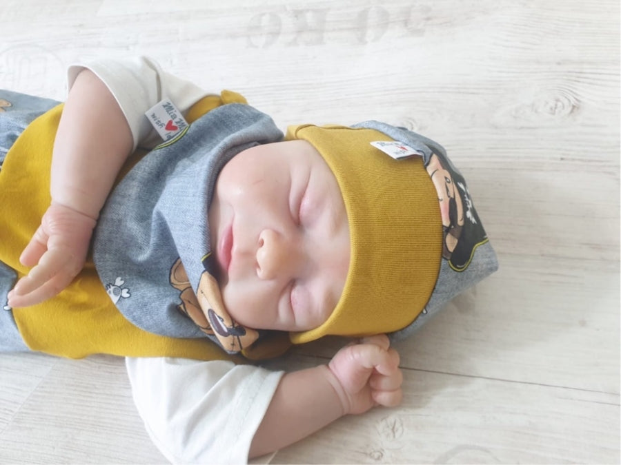 I cappelli per bambini sono realizzati da noi in jersey di cotone di alta qualità. Questo tessuto è 95% cotone e 5% spandex. Questo è il berretto leggero, morbido e molto comodo da indossare sulla pelle. Inoltre, il cappello si adatta perfettamente alla testa del tuo piccolo tesoro e lo tiene sempre caldo.