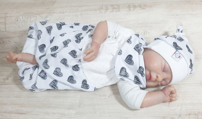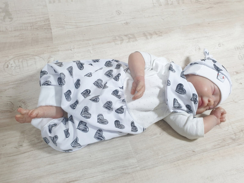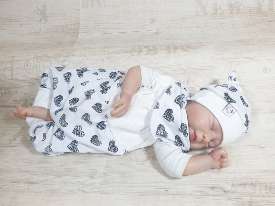 Atelier MiaMia tutina corta e lunga anche da neonato set cuori bianco e nero 306
