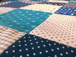 Atelier MiaMia coperta patchwork pois stelle blu con ricamo 13