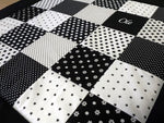 Atelier MiaMia coperta patchwork pois stelle nero bianco con ricamo 8