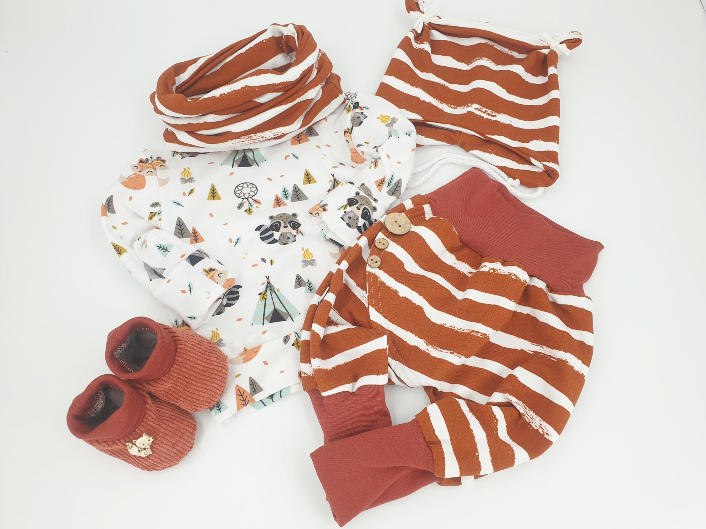 Atelier MiaMia - Rocky Pumphose gr. 46-110 anche come set con cappello e sciarpa strisce terracotta