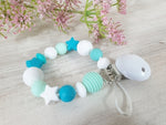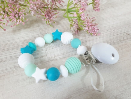 Atelier MiaMia catenella per ciuccio per passeggino o ovetto 6 bianco, petrolio, menta