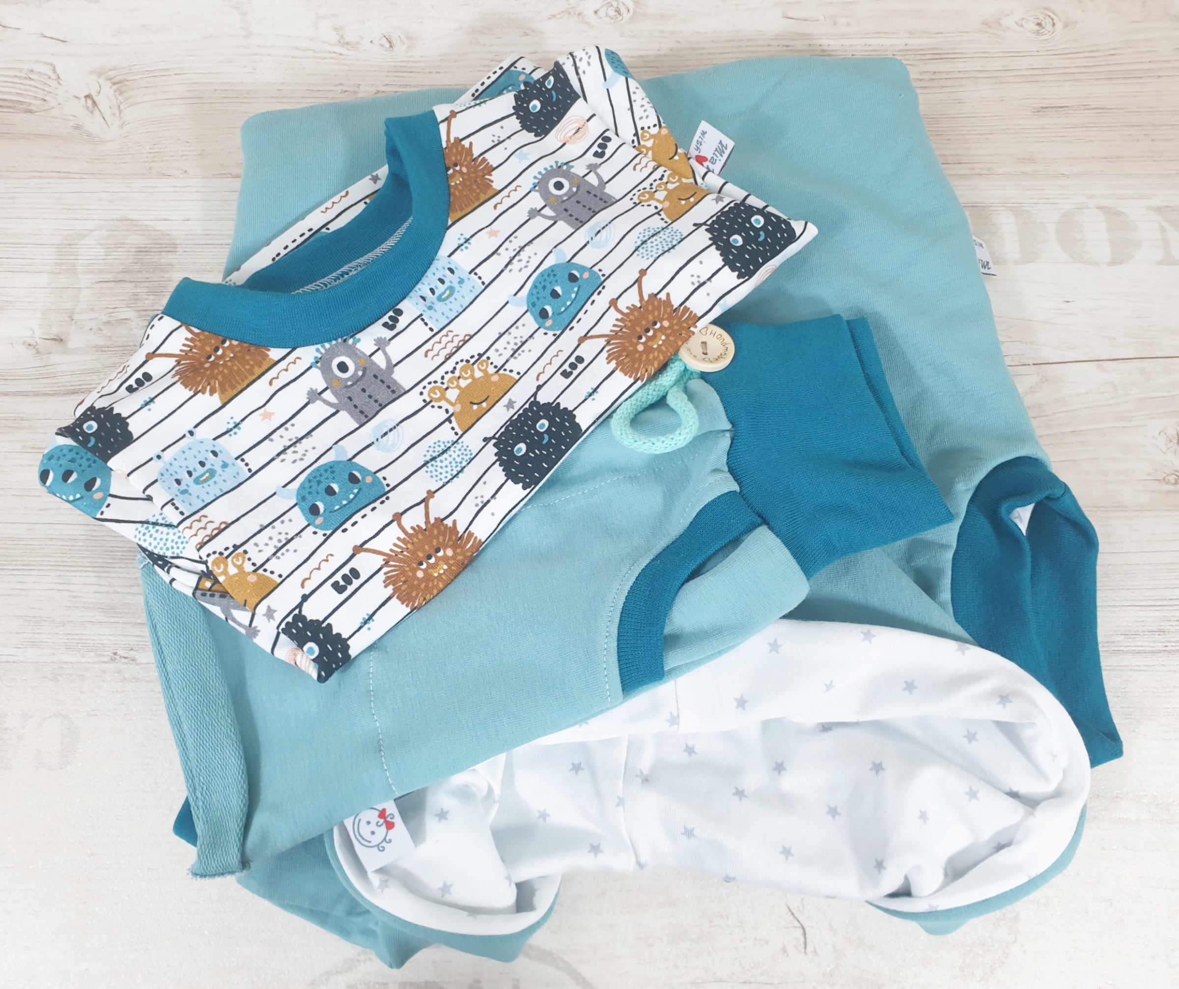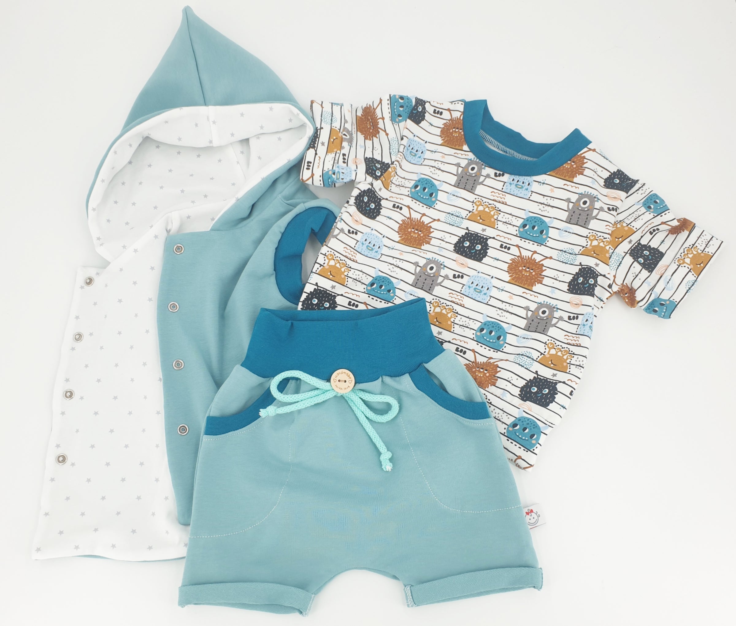 Tessuti di alta qualità con la migliore qualità di lavorazione, nessun prodotto di massa, possibile anche per neonati prematuri dalla taglia 44 in su.
