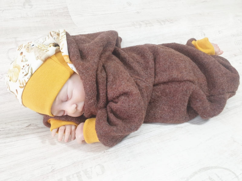 Descrizione: Morbida tuta in ottima lana cotta Salopette trendy in lana cotta con cappuccio a punta. Idrorepellente, termoregolatore e caldo, perfetto per la stagione fredda. Una maglia viene lavorata nel cappuccio in modo che sia un po' più morbida sulla testa. La tuta non ha tessuto extra all'interno, in modo da mantenere l'effetto termoregolatore della lana cotta! Ancora una volta, polsini extra lunghi da indossare più a lungo. Grazie alla generosa patta sul petto, NESSUNA aria fredda arriva al bambino. Facile da indossare e da togliere. Si prega di notare che i nostri prodotti sono realizzati a mano e sono realizzati su ordinazione, questo garantisce che ogni prodotto sia unico. Inoltre le edizioni sono STRETTAMENTE LIMITATE per assicurarti di ricevere un prodotto unico che non tutti hanno. Stai acquistando un prodotto fabbricato in Germania e non è un articolo prodotto in serie. Riceverai il prodotto da noi solo in occasione di fiere come Baby World, nel nostro negozio ed esclusivamente su Amazon in edizione limitata! Istruzioni per il lavaggio della lana: lavare a mano in acqua tiepida Una tuta per neonati offre una protezione completa Una tuta per neonati è un capo di abbigliamento ideale per neonati e bambini. Realizzato in un unico pezzo, può essere indossato rapidamente e facilmente e avvolge il tuo bambino tutt'intorno. Niente può scivolare, una tuta si adatta perfettamente a qualsiasi condizione atmosferica. Tute per neonati: diversi colori e modelli Che si tratti di un bambino o di una ragazza, puoi trovare rapidamente una tuta per bambini adatta perché sono disponibili in molti modelli diversi. Anche i neonati possono indossare un bambino del genere in generale. Quando le giornate si fanno un po' più fresche, puoi afferrare con i piedi una tuta per bambini realizzata in morbido pile. Il materiale non è solo piacevolmente morbido, ma anche molto caldo. Non è più necessario vestirsi faticosamente e accuratamente con spesse giacche e pantaloni invernali, la tuta da neve monopezzo viene rapidamente tirata sopra il normale guardaroba. Il cappuccio, anch'esso cucito saldamente, mantiene la testa, il collo e le orecchie al caldo e il tuo bambino è protetto dal freddo tutt'intorno. Una salopette per bebè è un ottimo capo di abbigliamento che è totalmente funzionale, ha un bell'aspetto e avvolge il tuo bambino. Non perdi molto tempo a vestirti e puoi dedicarti a cose più belle più velocemente. Un bambino in generale è una buona scelta in qualsiasi momento dell'anno.