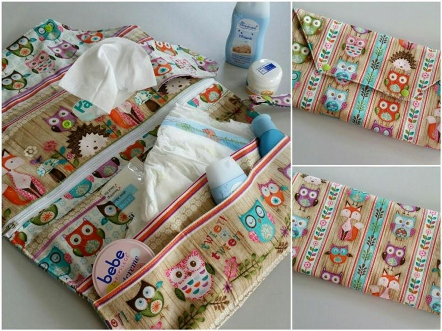 Nella borsa fasciatoio foderata non c'è nessun problema per 2-3 pannolini, una confezione di salviettine umidificate in uno scomparto separato con zip, la crema e un paio di cotton fioc, un ciuccio di scorta e quant'altro ti serve.