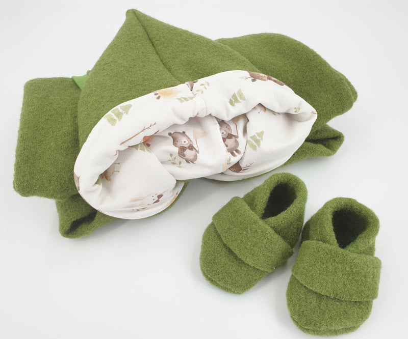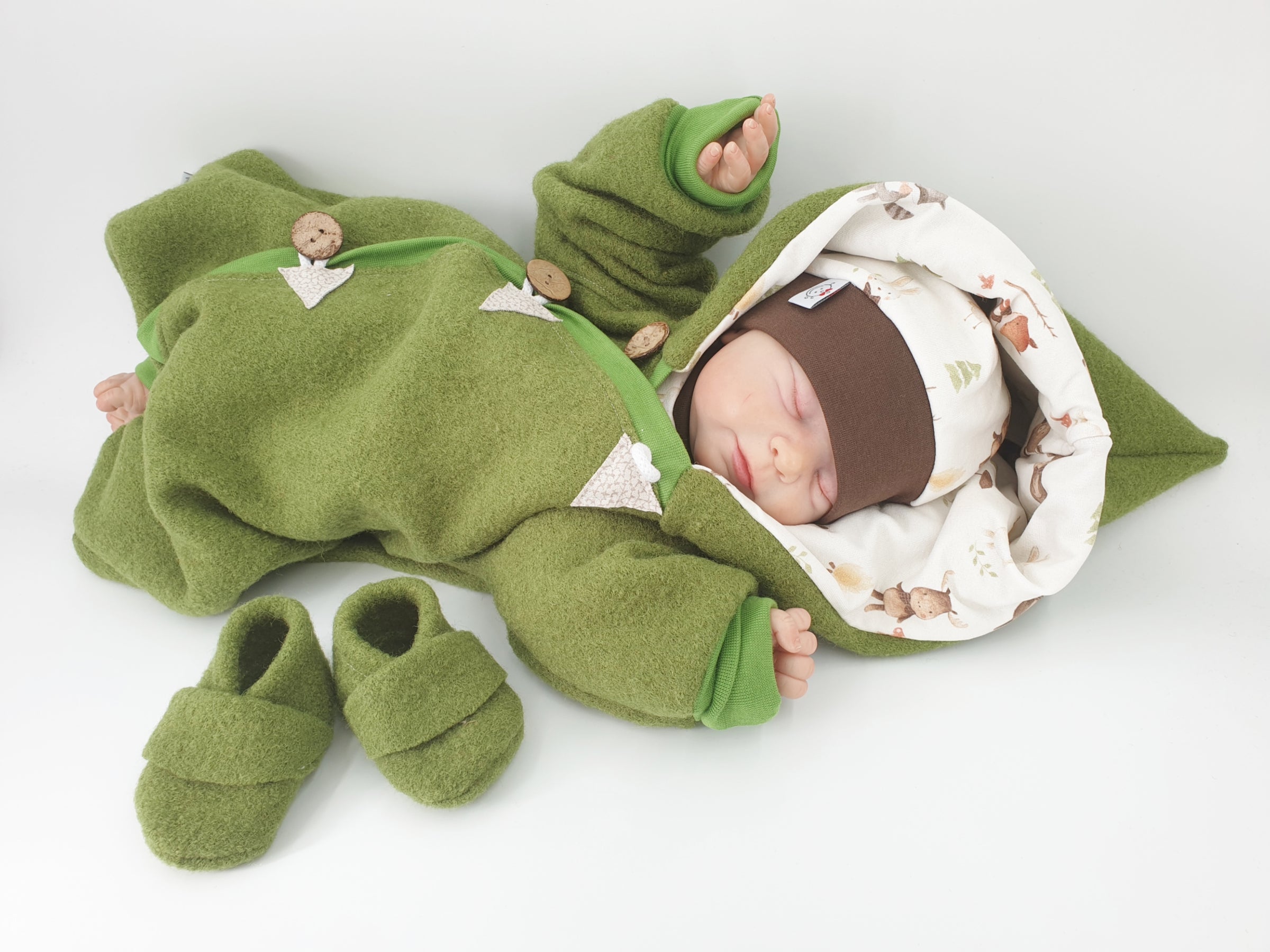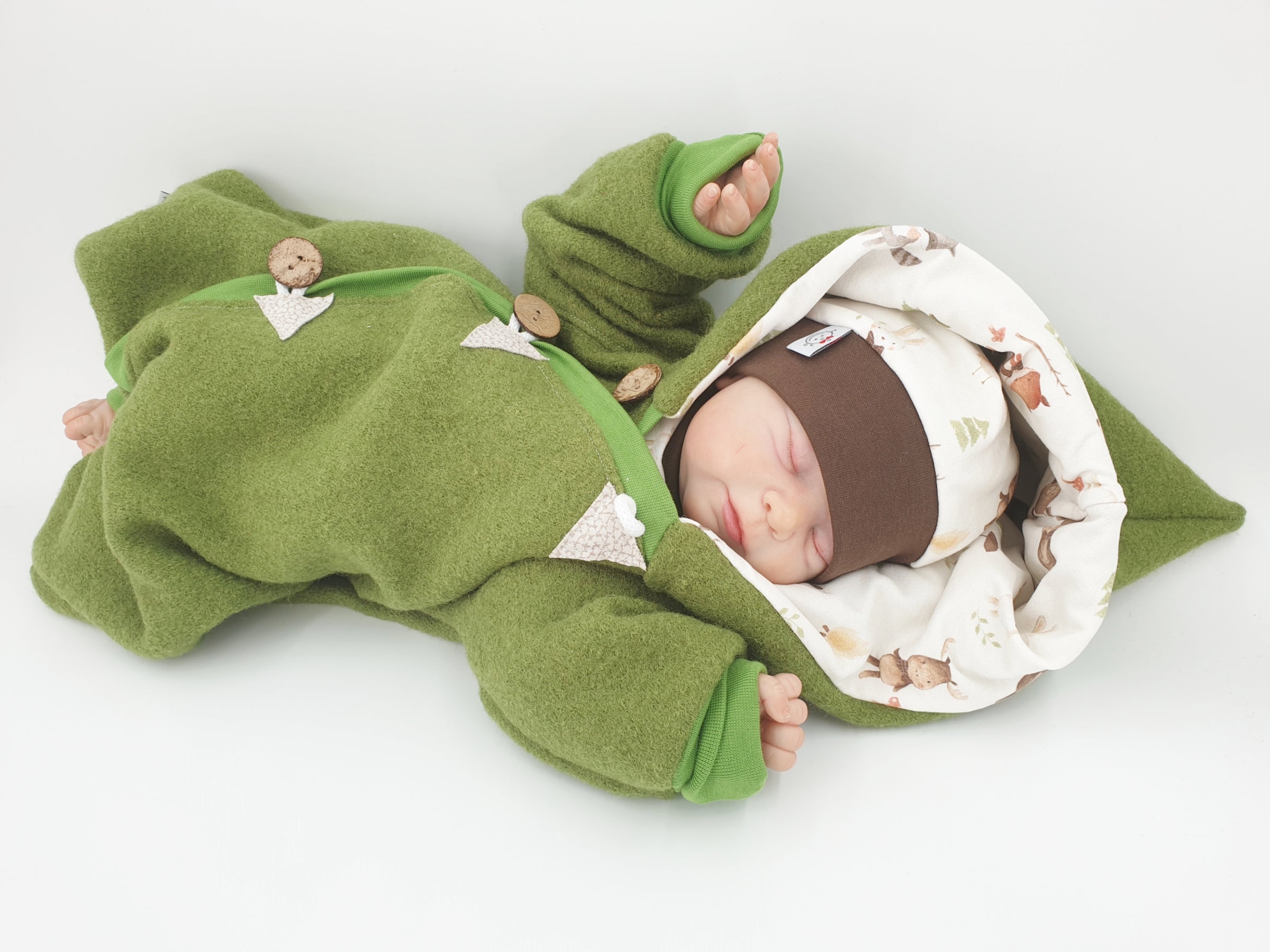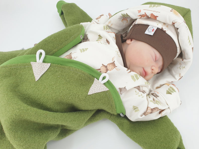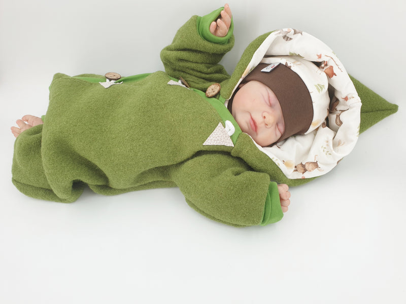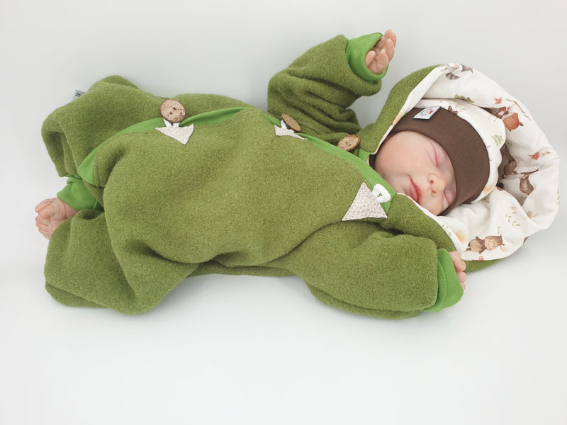 Atelier MiaMia - Passeggiata - tuta bambino bambino da 50 a 110 stilista camminata tuta verde animali del bosco