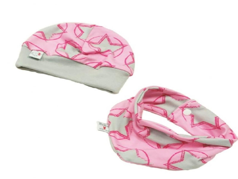 Atelier MiaMia Beanie Set Hat and Scarf Baby Pink Gray Stars No. 184