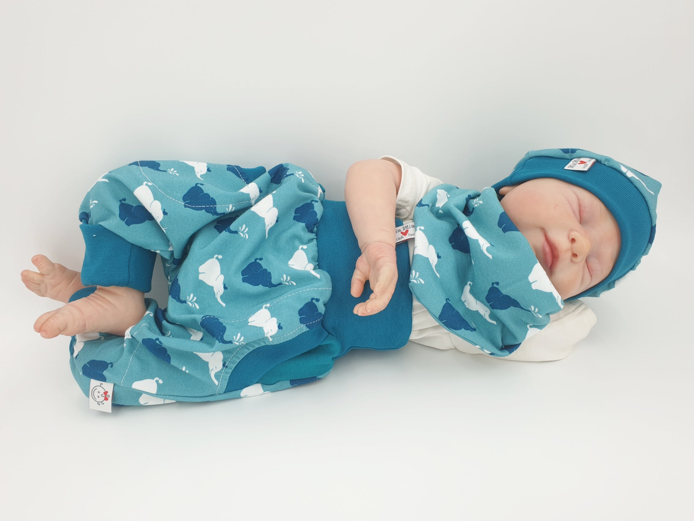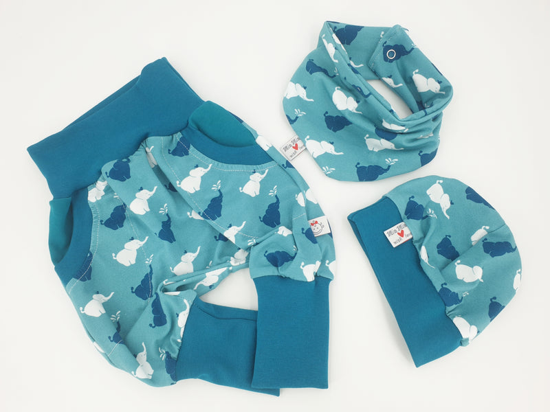 Atelier MiaMia Cool bloomers or baby set short and long elephant blue 110