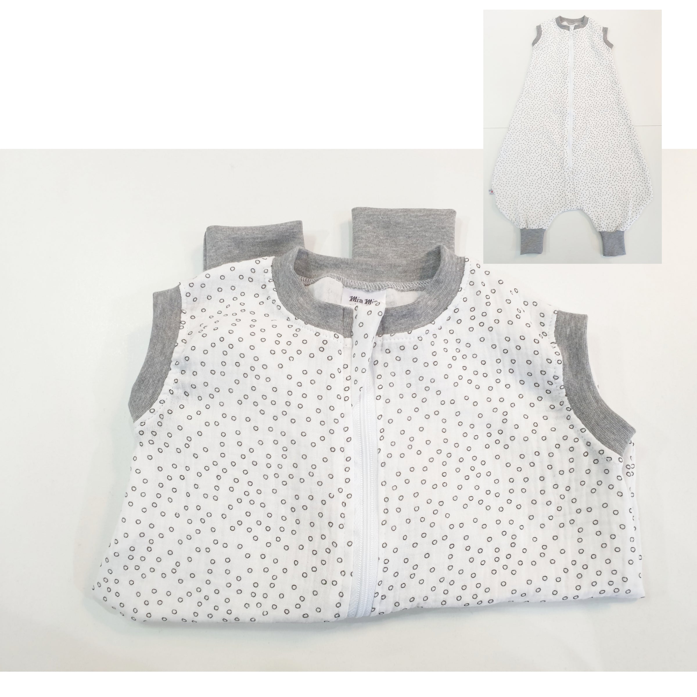 Atelier MiaMia *Mutzelpumper* sleeping bag with feet, size. 50-104 squiggles