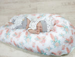 • A nursing pillow can also serve as a baby nest. So you can bed your baby comfortably and safely next to you. To prevent your baby from sinking too far into the nest, you can wrap a towel across the nest. Make sure that the end of the towel is under the nest.