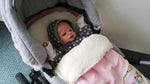 Lovingly and elaborately crafted winter footmuff for the pram with fine little details that are to fall in love with, as always, free choice of fabric for you. With the same button positions, you can make a lot out of one footmuff, simply order a replacement hood in a different fabric design and it will never be boring again.